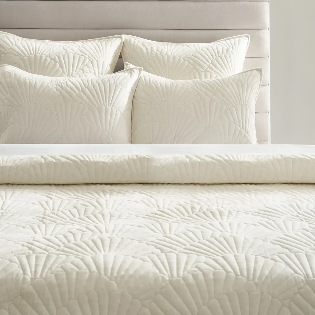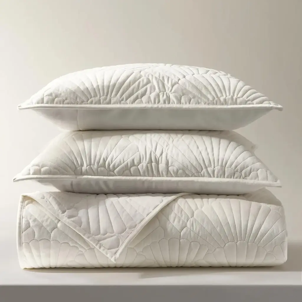 Fan Velvet Quilt Set - Ivory