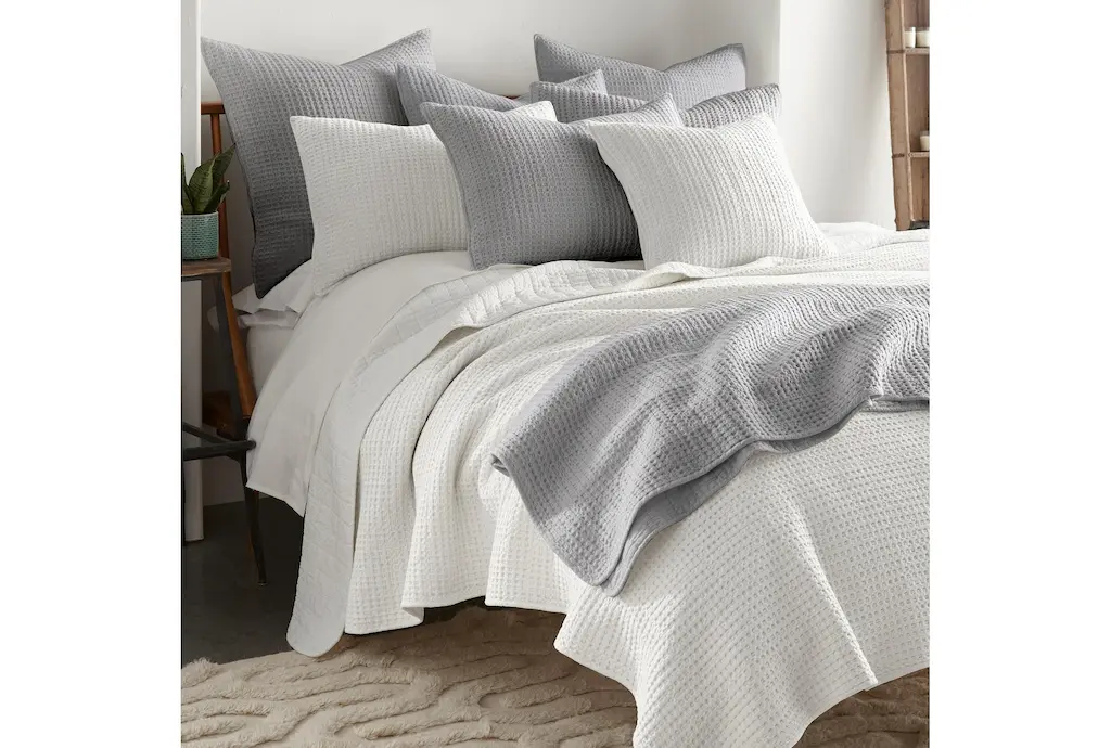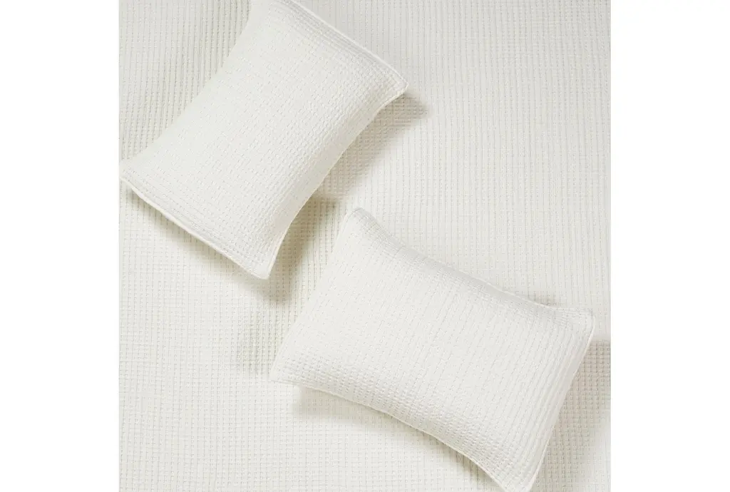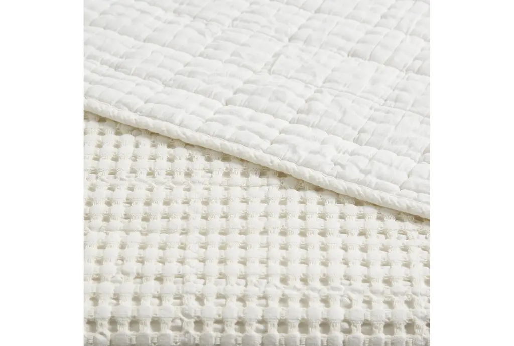 Full/queen Quilt | 3 Piece Set | Waffle White | Solid | Cotton | Machine Washable