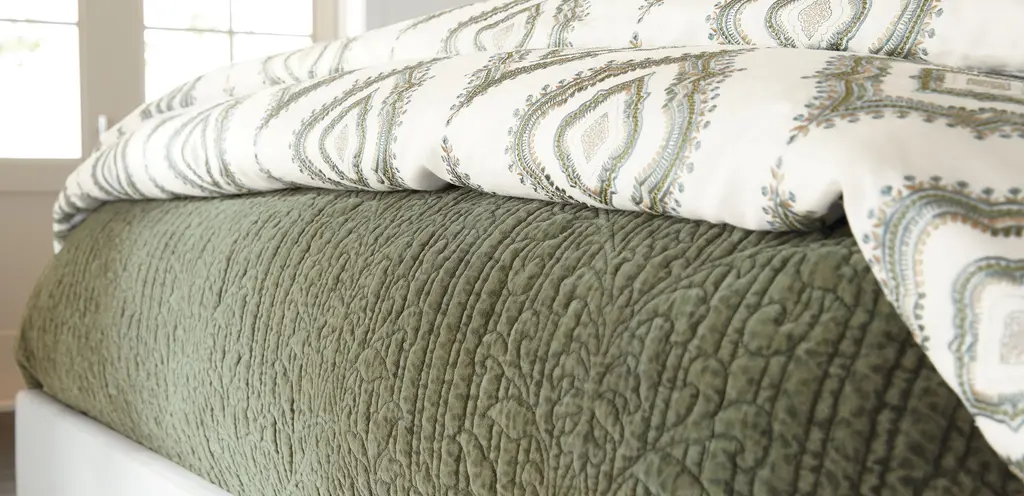 Garment-dyed Velvet Quilt And Shams Set, Sage