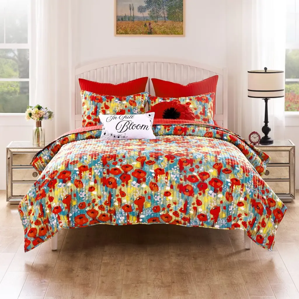 Greenland Home Fashions Poppies Quilt Set – 2-piece Twin/xl, Vibrant Red Floral Print, 68x88 Inches