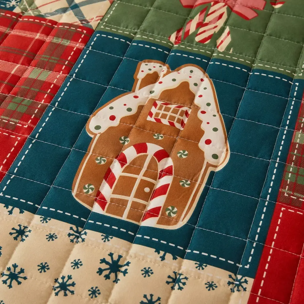 Wrap your bedroom in holiday magic with our Christmas Patchwork Quilt Set! This cozy bedspread blends festive charm and classic style, featuring a patchwork design adorned with gingerbread houses, candy canes, Christmas trees, and red-green plaids. Crafted from durable polyester, it's wrinkle-resistant, fade-proof, and perfect for welcoming guests or adding seasonal cheer to your space. The quilted construction adds texture and keeps the filling secure, while the vibrant holiday prints stay bright through countless washes. Use it as a bedspread, a decorative throw, or a cozy layer for winter nights' ideal for bedrooms, guest rooms, or even as a festive accent in your living area.