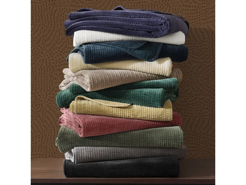 Irresistibly soft and cozy, this quilt brings a warm, lived-in charm to any room. Our stonewashed cotton velvet quilt has a substantial hand and easy drape, accentuated by channel quilting for a simple yet modern look. Durable and easy to care for, this quilt acts as a lightweight standalone piece for warmer months but transforms into a versatile layering element during cooler months. Its availability in a wide range of neutrals and jewel tones means there's a sumptuous quilt for your style, whatever that may be.