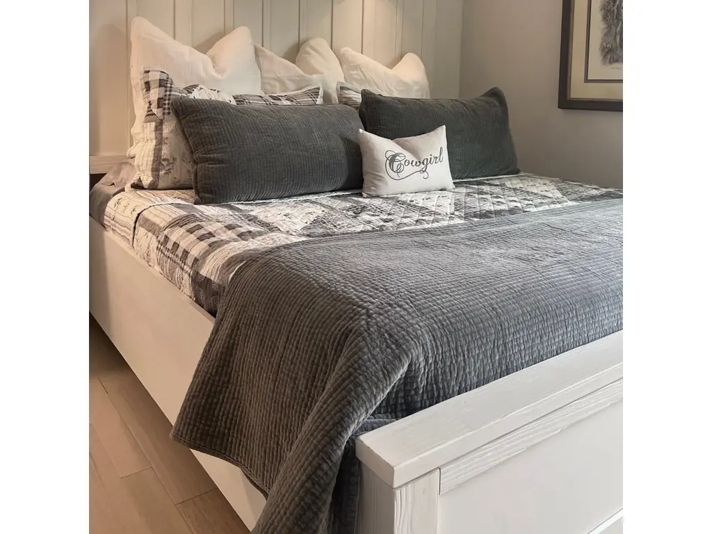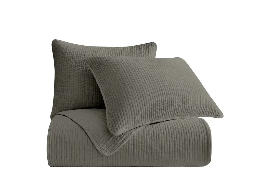 Irresistibly soft and cozy, this quilt brings a warm, lived-in charm to any room. Our stonewashed cotton velvet quilt has a substantial hand and easy drape, accentuated by channel quilting for a simple yet modern look. Durable and easy to care for, this quilt acts as a lightweight standalone piece for warmer months but transforms into a versatile layering element during cooler months. Its availability in a wide range of neutrals and jewel tones means there's a sumptuous quilt for your style, whatever that may be.