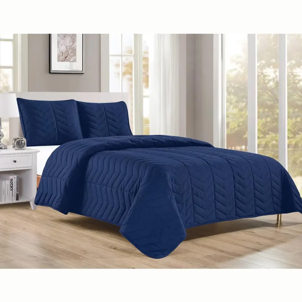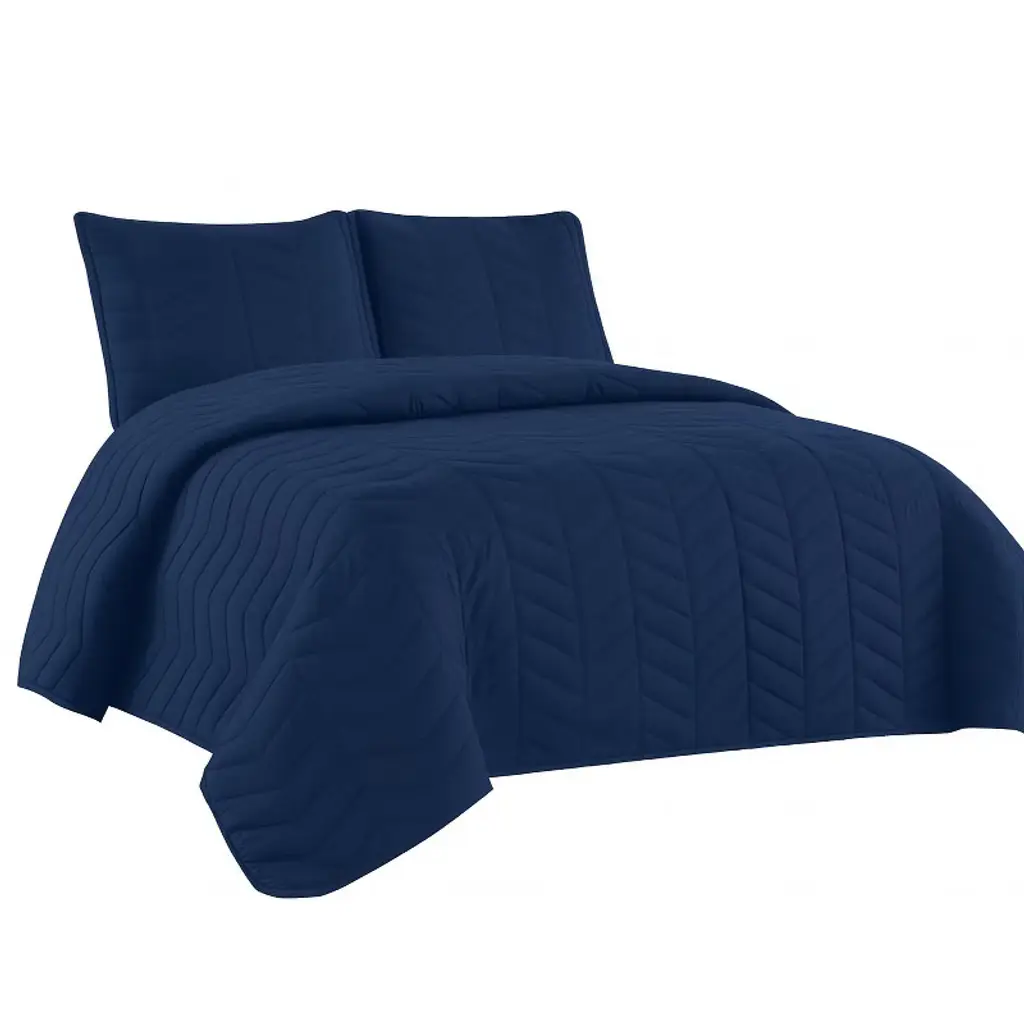Home Mart Goods Navy Blue 3 Piece Modern Geometric Solid Soft Plush Cozy Bedspread Quilt Set