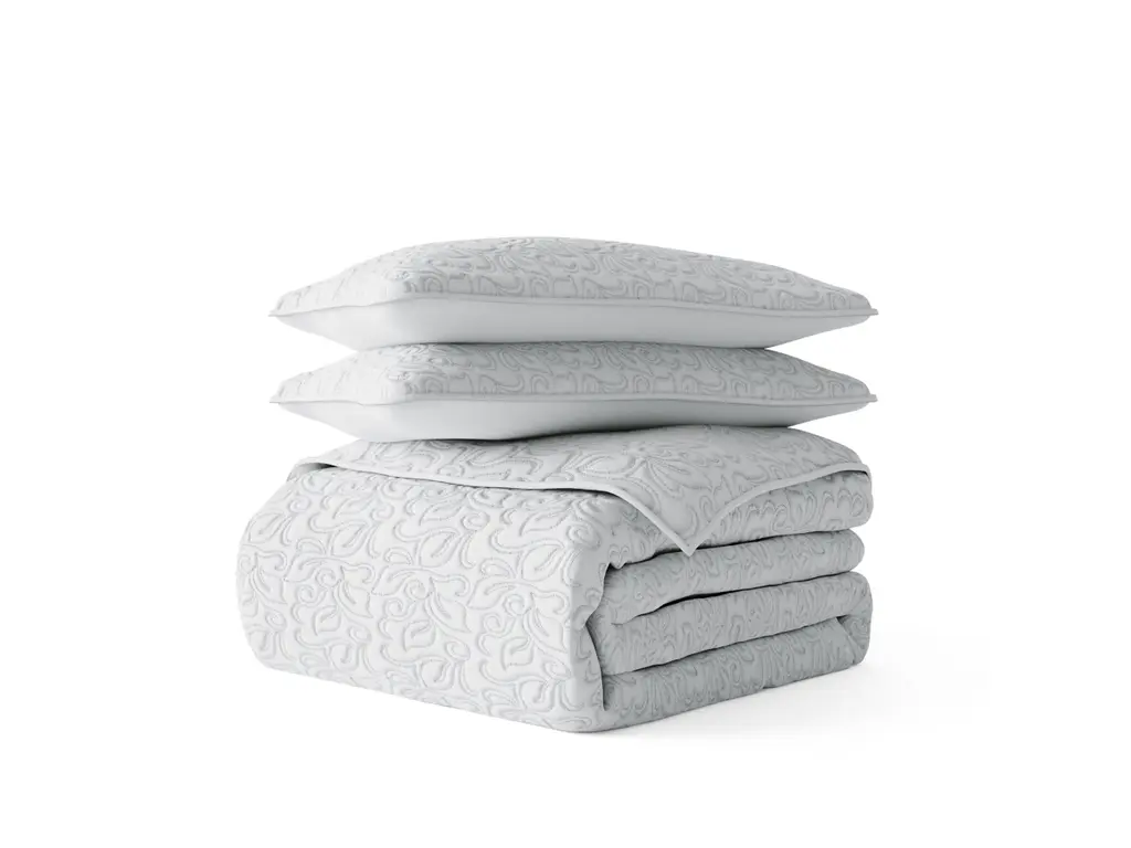 Give your room a comfy new addition with this ultrasoft quilted coverlet set with shams. Spun from premium yarns, this set is twice as strong as cotton, wrinkle resistant and double brushed for a super soft, cozy feel. The elegant, stitched design elevates the look and feel of any bedroom.