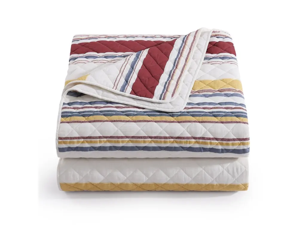 Timeless design and luxurious comfort take center stage in the Mystic Stripe Cotton Gauze Quilt Set. A modern twist on the classic stripe print, this lightweight quilt features variegated stripes in alternating colors, a design choice inspired by the subtle charm of vintage apparel. Made of 100% cotton gauze fabric, it offers an ultra-soft hand feel and breathability at a budget-friendly price. Printed in a variety of colorways, from refreshing coral and cool navy to warm merlot, this cotton gauze quilt set pairs well with coordinating solid colors. Pair it with our Indigo Hill Anna and Cotton Comfort Collections for a chic, casual look. Use it as a light top layer during hotter months or as a middle layer in chillier weather.