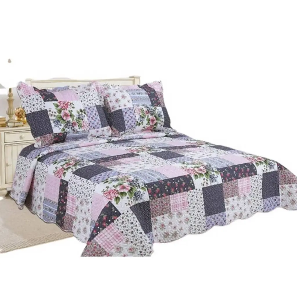 J&v Textiles King Reversible Printed Quilt Set Bed Blankets White/pink/dark Blue