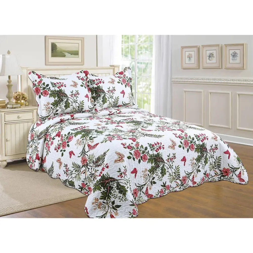 J&v Textiles Twin Reversible Printed Quilt Set Bed Blankets Floral White/pink/green