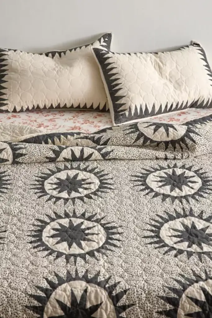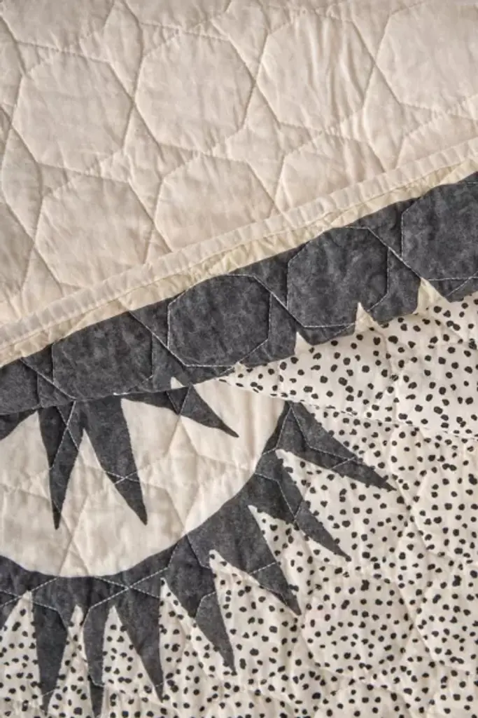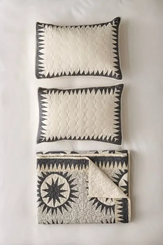Bedding set from Justina Blakeney’s Jungalow that lends a starry touch to your dreams, thanks to boho-inspired, abstract celestial motifs printed across the surface. High-contrast geometrics bring rich dynamics to your space, topped with quilted stitching. Includes a quilt and two shams with split-opening backs. **Features** \- Patterned quilt set by Justina Blakeney \- Finished with celestial motifs allover the top \- Lightweight, this versatile quilt is perfect to curl up under all year long **Content + Care** \- Includes quilt and 2 shams \- Pillow inserts sold separately \- 100% Cotton \- Machine wash \- Imported **Size** Full/Queen \- Sham dimensions: 20"l x 26"w \- Quilt dimensions: 90"l x 88"w King \- Sham dimensions: 20"l x 36"w \- Quilt dimensions: 104"l x 90"w
