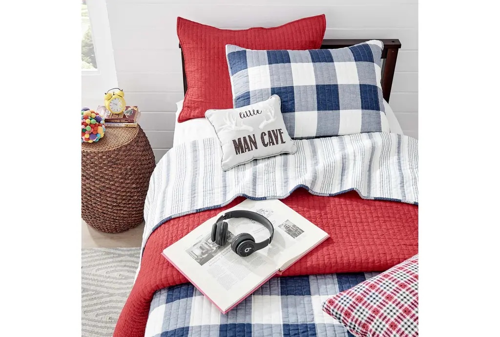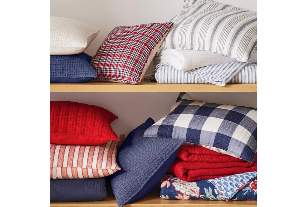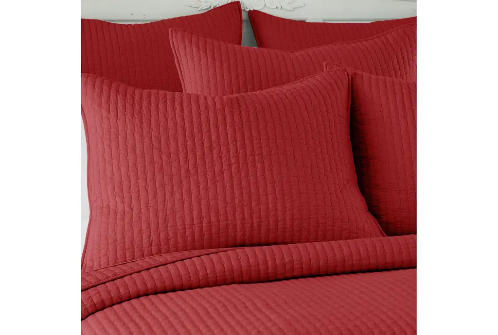 This King / California King Cotton Quilt-3 Piece Quilt Set in Cross Stitch Red is the perfect addition to your bedroom. Designed with a geometric pattern, this quilt set is both stylish and functional. The chile red color brings a vibrant and bold touch to your room, making it a standout piece.