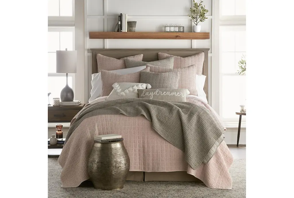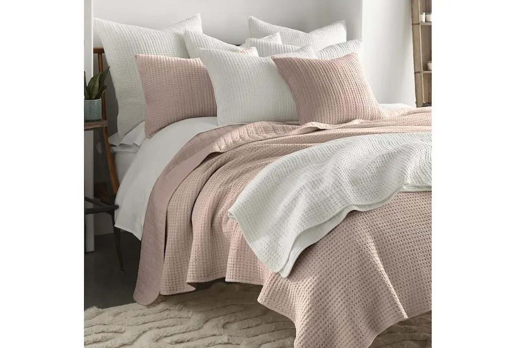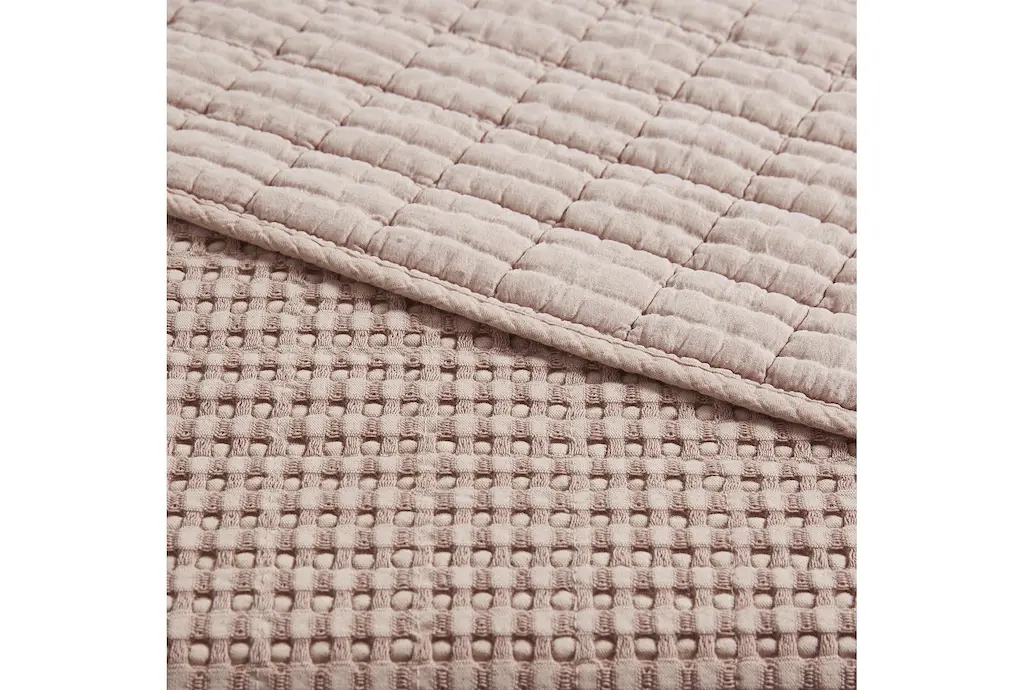 King Cotton Quilt-3 Piece Set Waffle Blush | Machine Washable