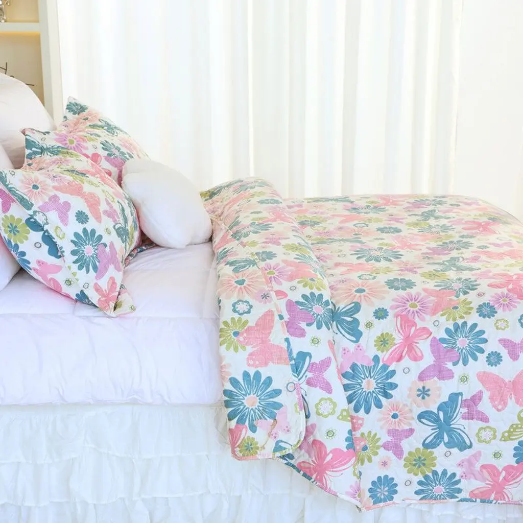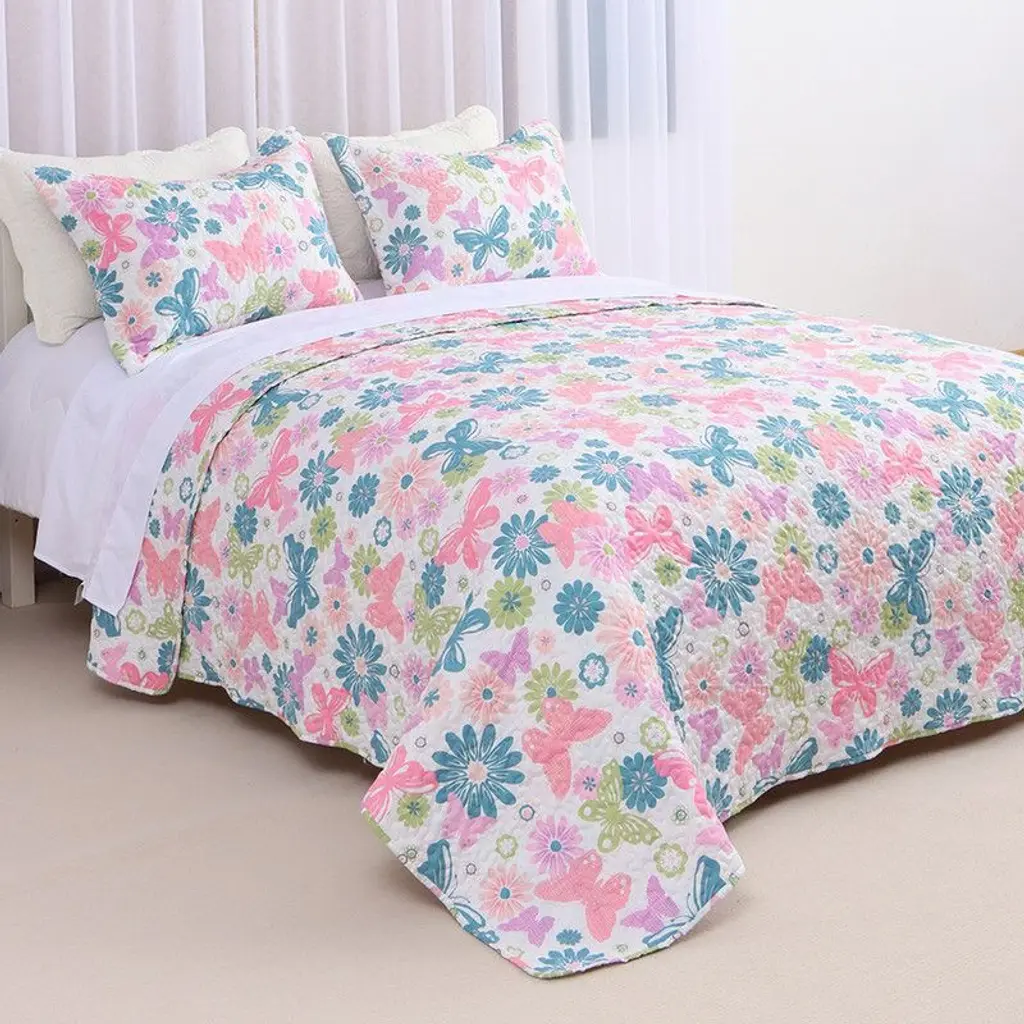 Luupatchy Butterfly Floral 3 Pc Quilt Set: Whimsical Garden Bedding With 2 Pillowcases, King Size