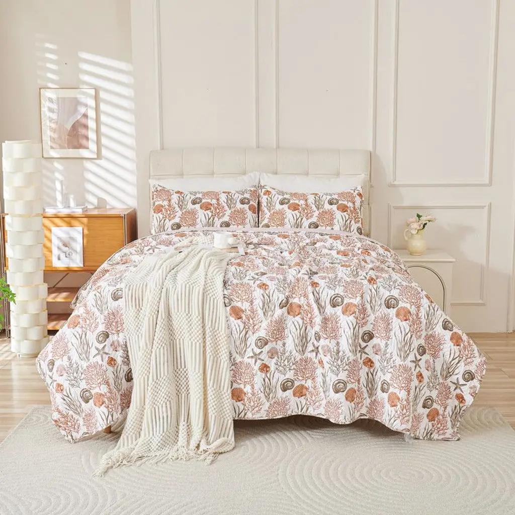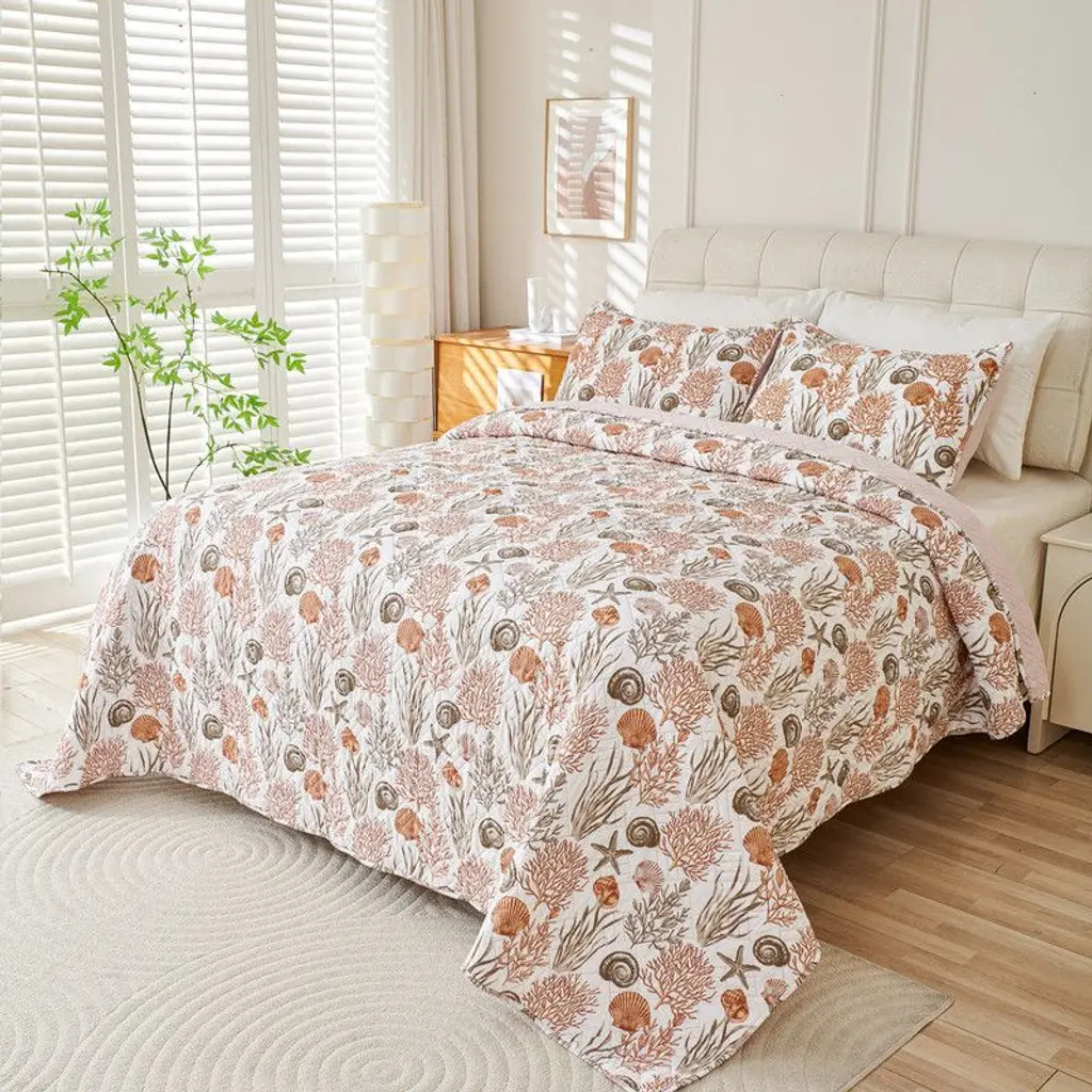 Ideal for those craving bold, durable bedroom energy, this Luupatchy set is made from heavy-duty polyester that’s stretch/stain-resistant, with a brushed finish for softness and vibrant red ocean prints (seashells, starfish in tide-line designs) that stand out. The set includes 1 quilt (3 sizes: Twin: 68in W×86in L for 39in W×75in L Twin beds with foot coverage, Queen: 92in W×96in L for 60in W×80in L thick Queen beds, King: 106in W×96in L for 76in W×80in L full-width King beds) and 2 pillow cases (20in W×26in L with oversized visible prints, fitting standard sleeping pillows); machine-washable, easy-drying, and tear/color-loss resistant (plus hidden loops for wall art use), it creates a lively, low-maintenance space without extra bedding.