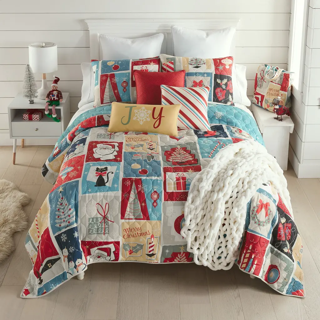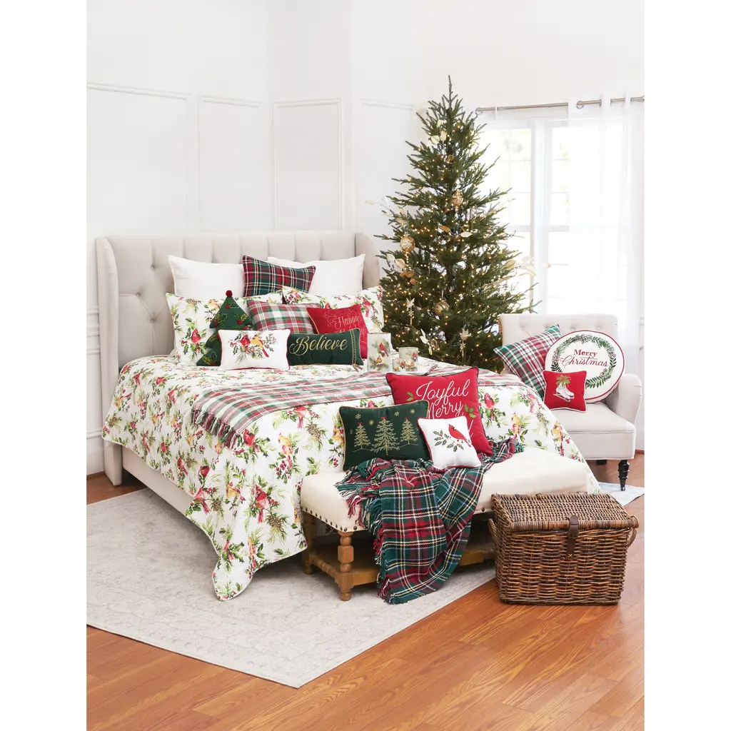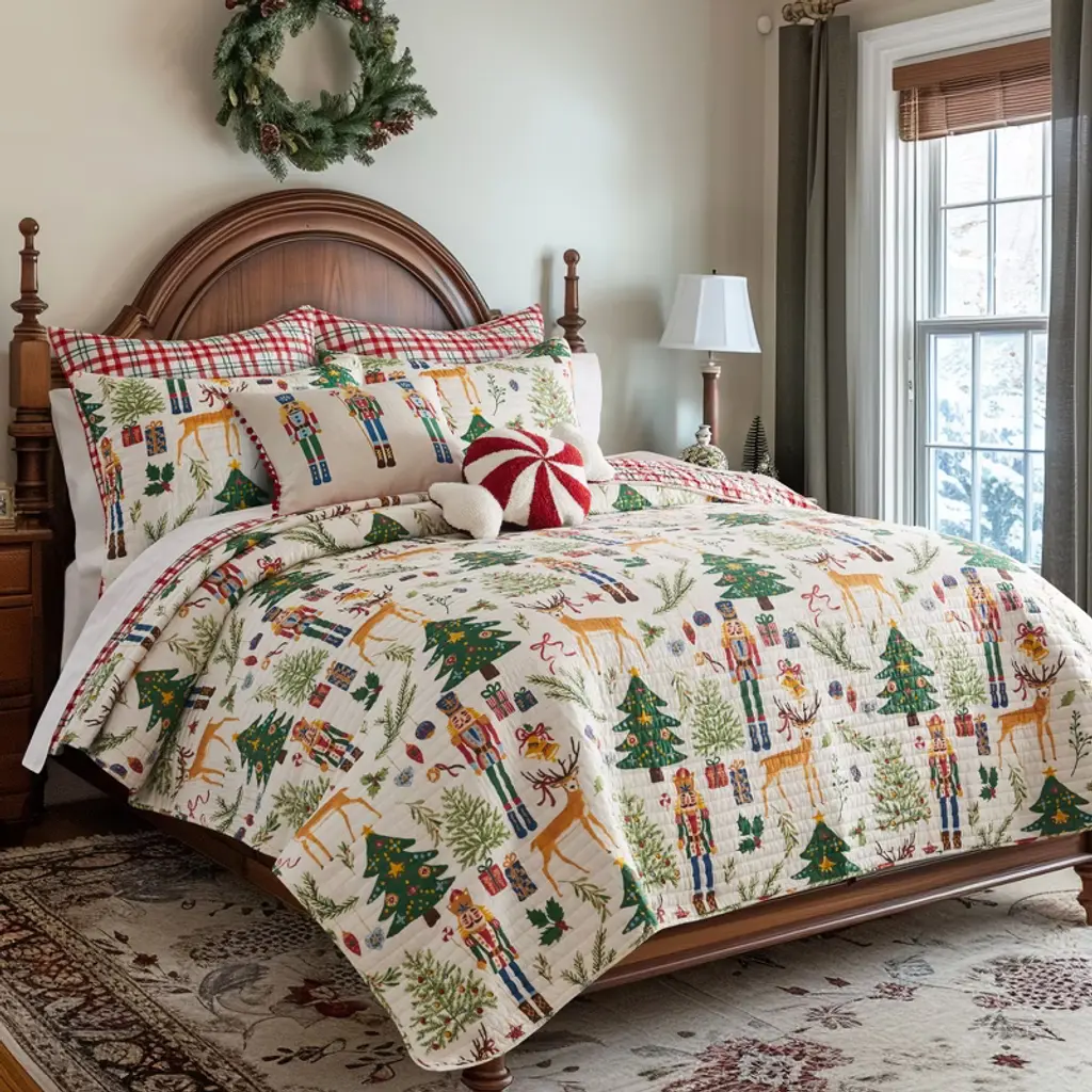 The Nutcracker Reversible Quilt Set by Levtex Home is inspired by the joy and cheer of the holiday season. Offered in green, red, white and taupe, this design will immediately transform your bedroom. This reversible quilt features a collection of festive holiday icons and Nutcracker characters on the front, reversing to a green, red and white tartan plaid on the back. The Quilt and Sham have a cotton front and microfiber back, filled with a cotton-rich filler, and are machine washable. Enjoy this for years to come!