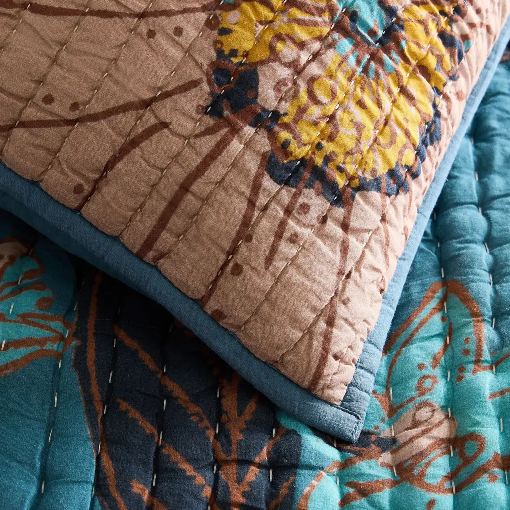 Adds beautiful blooms and color to your bedding. Crafted from soft, long-lasting 100% cotton. Makes a cozy layer, perfect for any time of year. Skillfully handcrafted by Indian artisans.