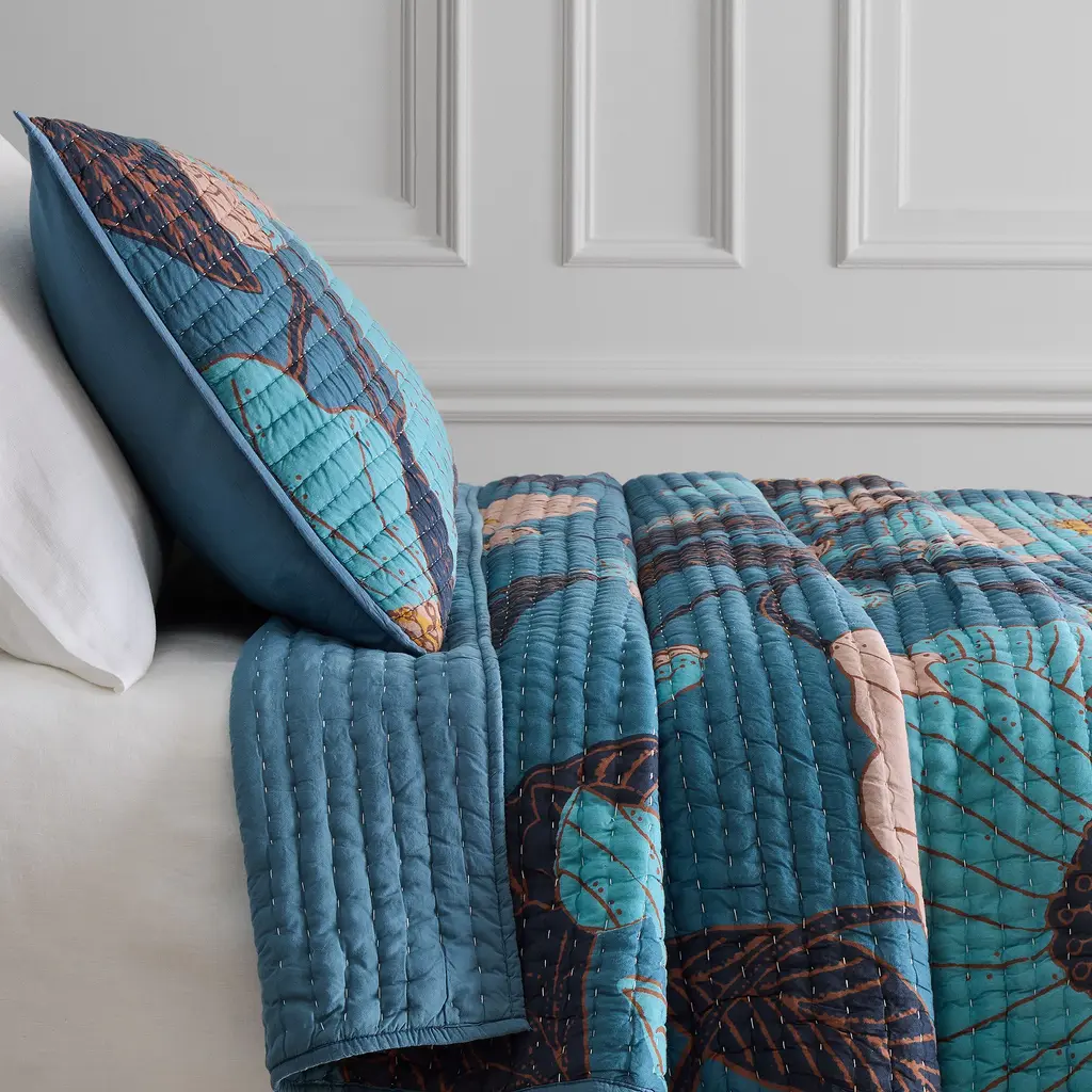 Poppy Floral Stitch Quilt & Shams