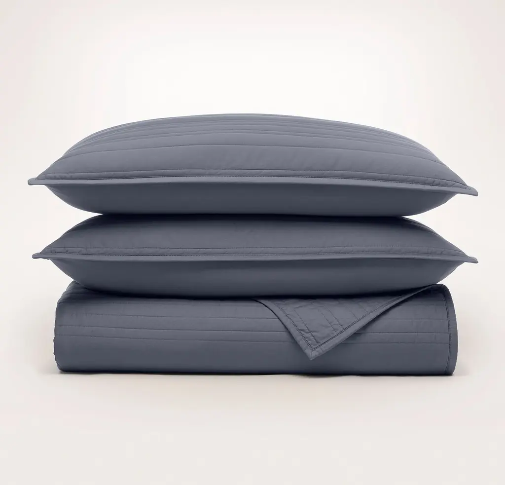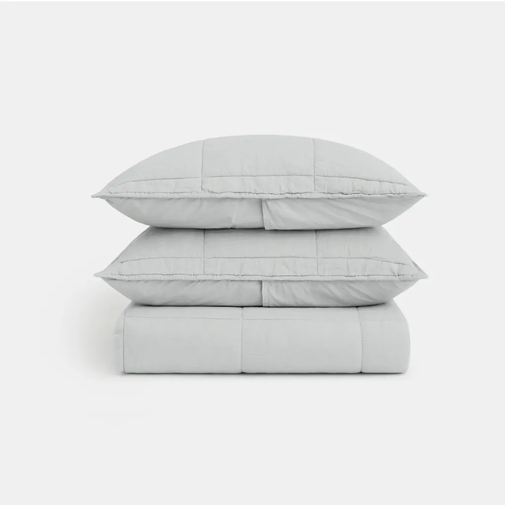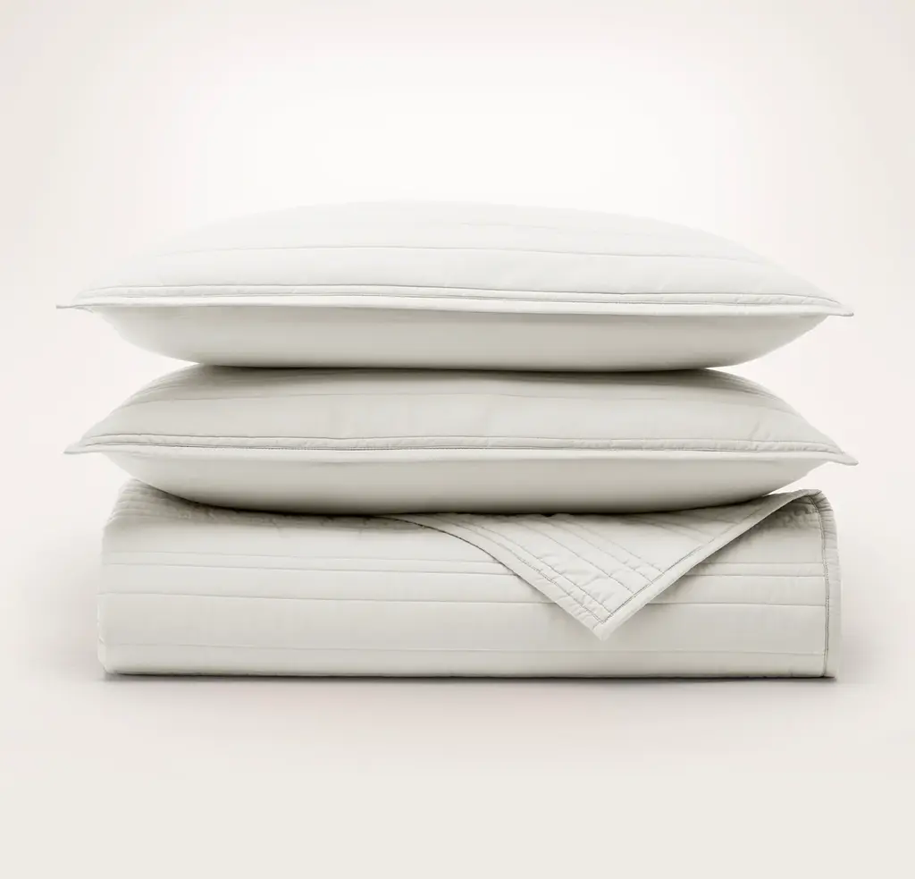 Our heirloom-quality Quilt Sets start with the highest quality threads sourced from the finest long-staple 100% organic cotton on earth. Each are made with precise stitching and feature a versatile design. The Feel Buttery soft in a breathable, all-season weight The Look Signature Basketweave Quilt – Soft sheen with an intricate basketweave pattern, finished by hand Signature Stripe Quilt Set – Soft sheen with a modern, linear single-needle design Airy Voile Quilt Set – Easygoing and dimensional with embroidered accents