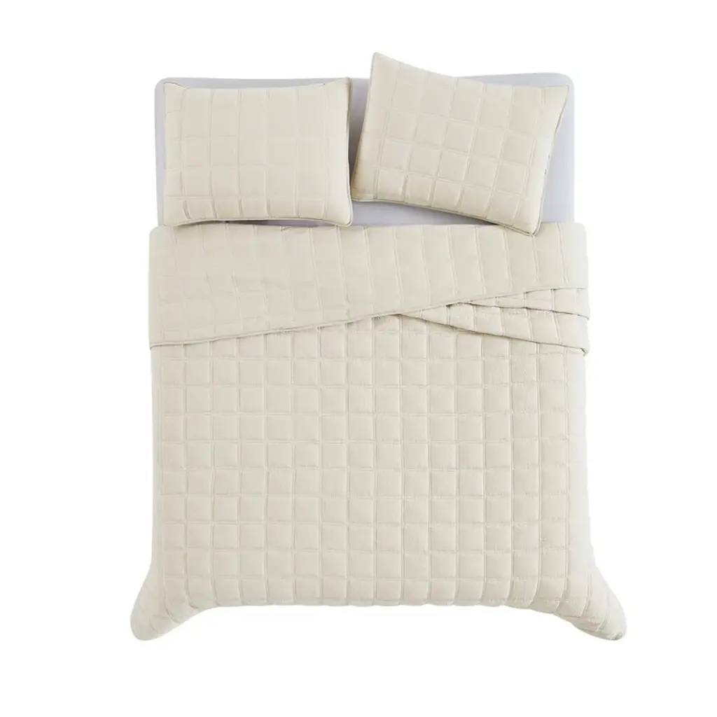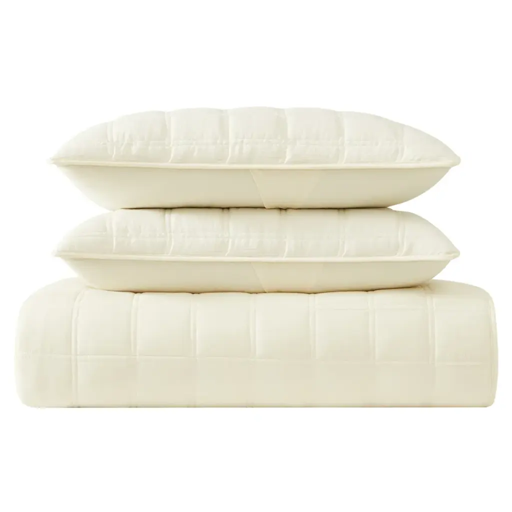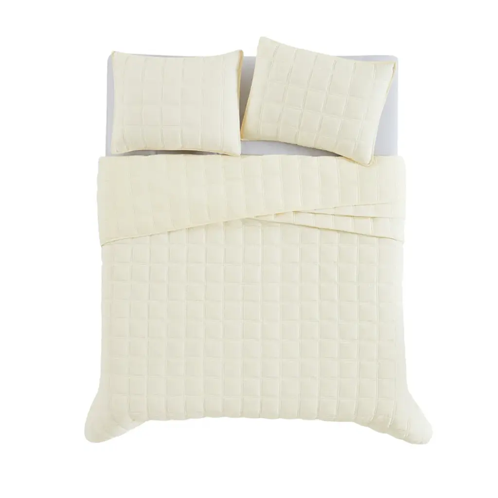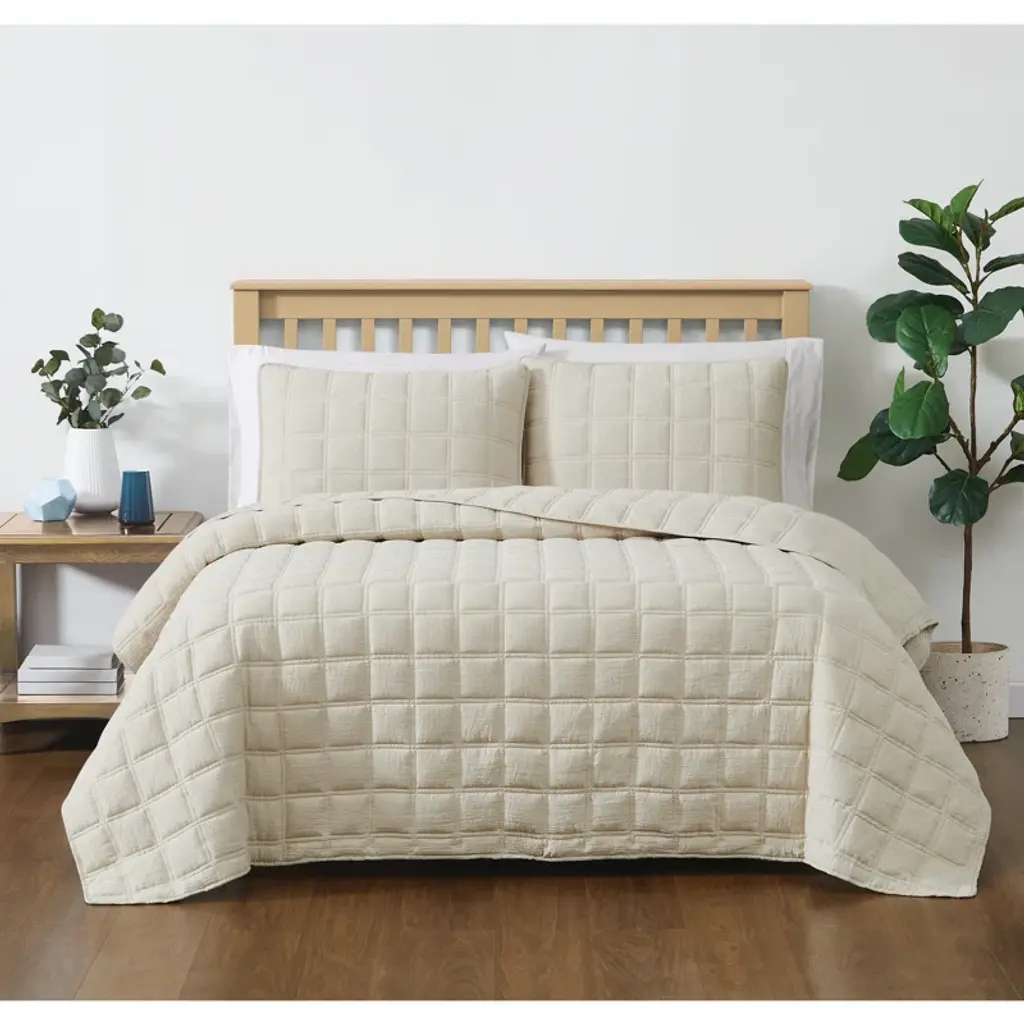 Subtlety at its finest. Add a touch of texture that will really elevate your bedroom with this polyester faux gauze bedding that is Truly Soft. This soft fabric has a great textured feel and a different surface texture to bring depth to your bed. The framed box stitch pattern on the face of the quilt and shams adds even more texture to the ensemble. Quilts are filled with a thin layer of polyester fiber filling for a nice light weight feel perfect for warmer climates alone or as an added layer in colder climates. Available in an assortment of colors to easily coordinate to any bedroom. Bedding comes with sham(s) to easily complete your bed.