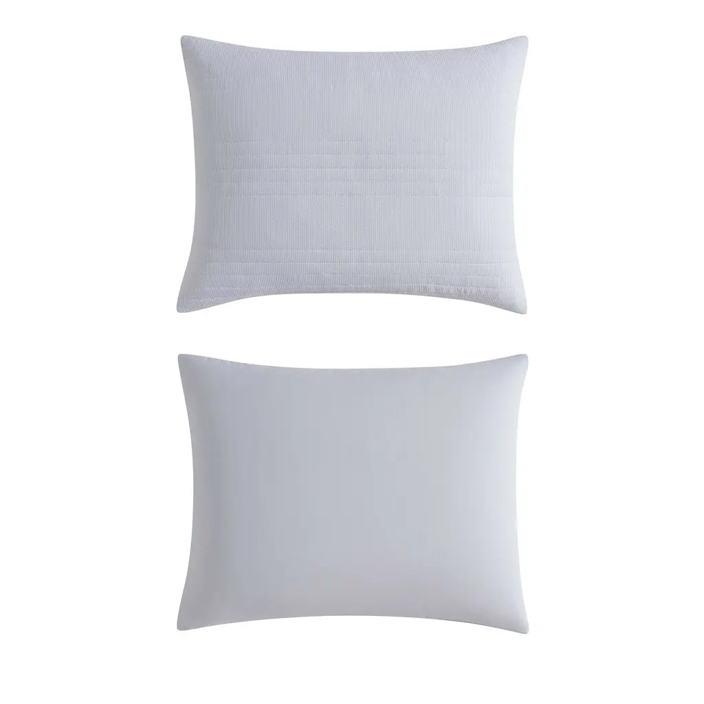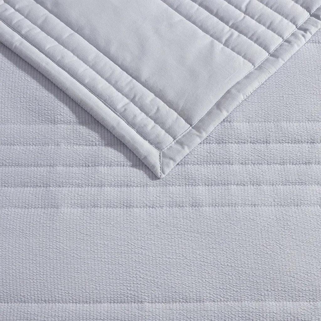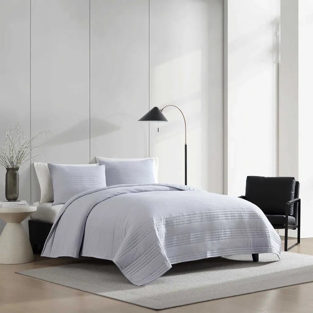 Infuse your bedroom with relaxation and style with the beautiful Vera Wang seersucker stripe quilt and sham set. Vera Wang's signature elegance shines brightly in this seersucker stripe design, showcasing clean lines, subtle texture, and an understated sophistication. The quilt's stunning pastel blue adds instant warmth into your bedroom. With it's lightweight, relaxed design, this quilt seamlessly pairs with Vera Wang sheet sets sold separately, allowing you to curate a cohesive bedroom retreat.