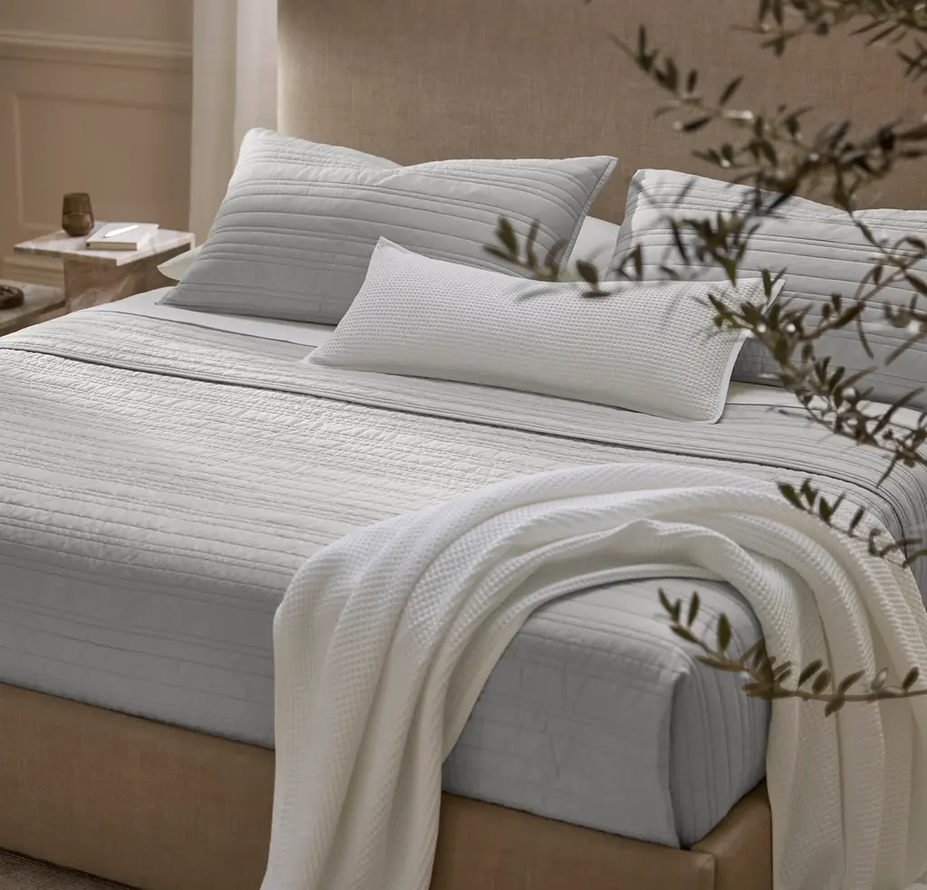 This versatile quilt brings timeless style and subtle texture to your top of bed. It’s crafted in 44 meticulous steps, starting with the highest quality 100% organic cotton threads—used to create both the buttery soft shell with our Signature fabric, and the breathable cotton batting that gives this layer its four-season weight. After the linear single-needle design is embroidered, each quilt is finished with a special wash that adds dimension around the stitching, and enhances the fabric’s softness for an even more luxurious hand-feel. The Feel Buttery soft in a breathable, all-season weight The Look Soft sheen with a classic, linear single-needle design