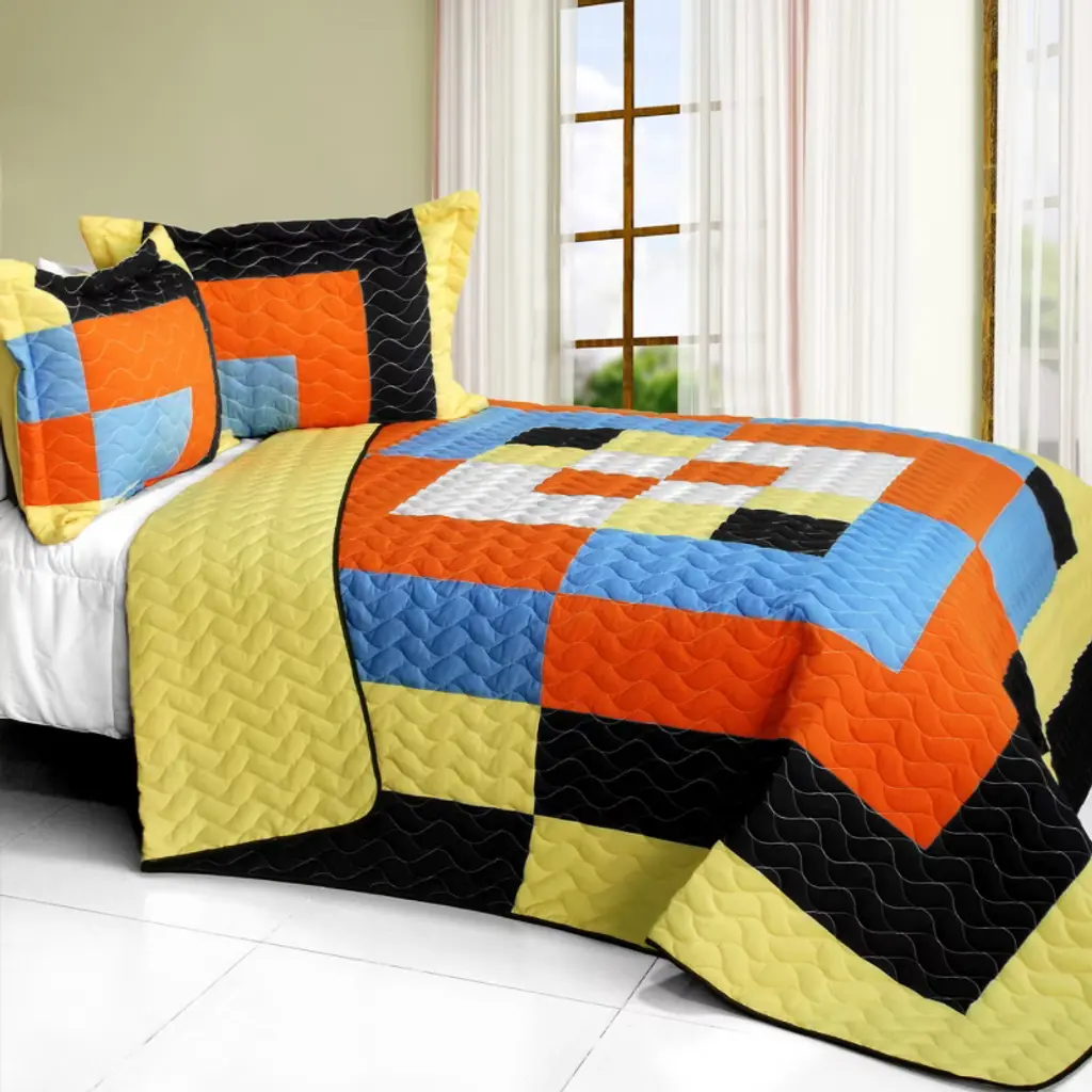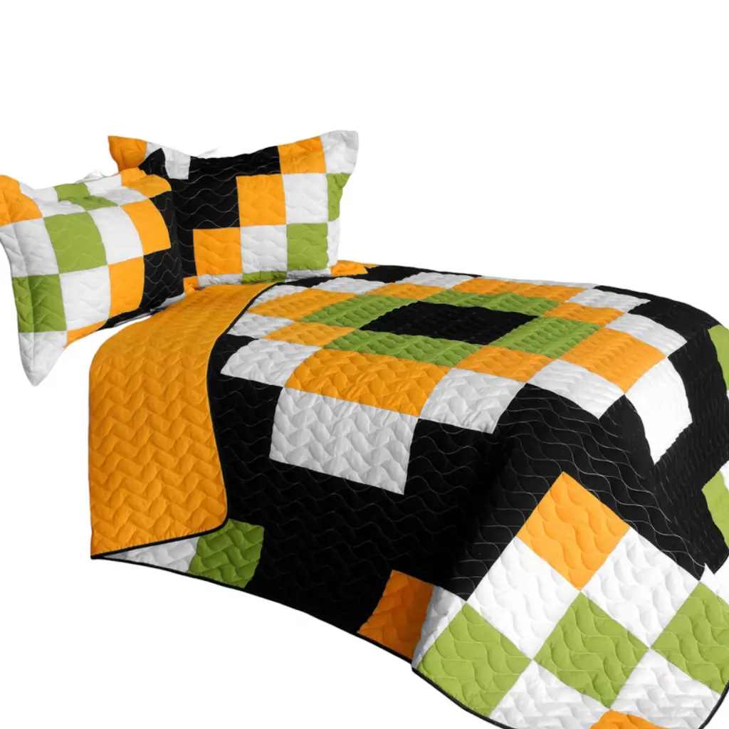 Slickblue Full/queen Quilt Set, 100% Tc Fabric, Reversible Patchwork, Geometric Pattern, 3Pc, Orange