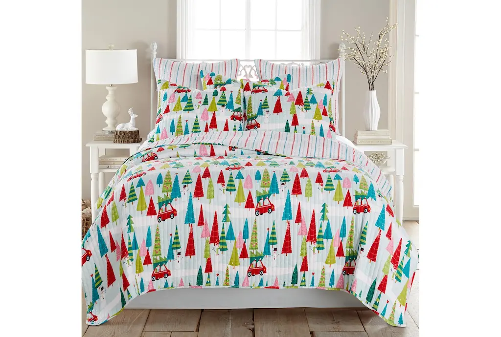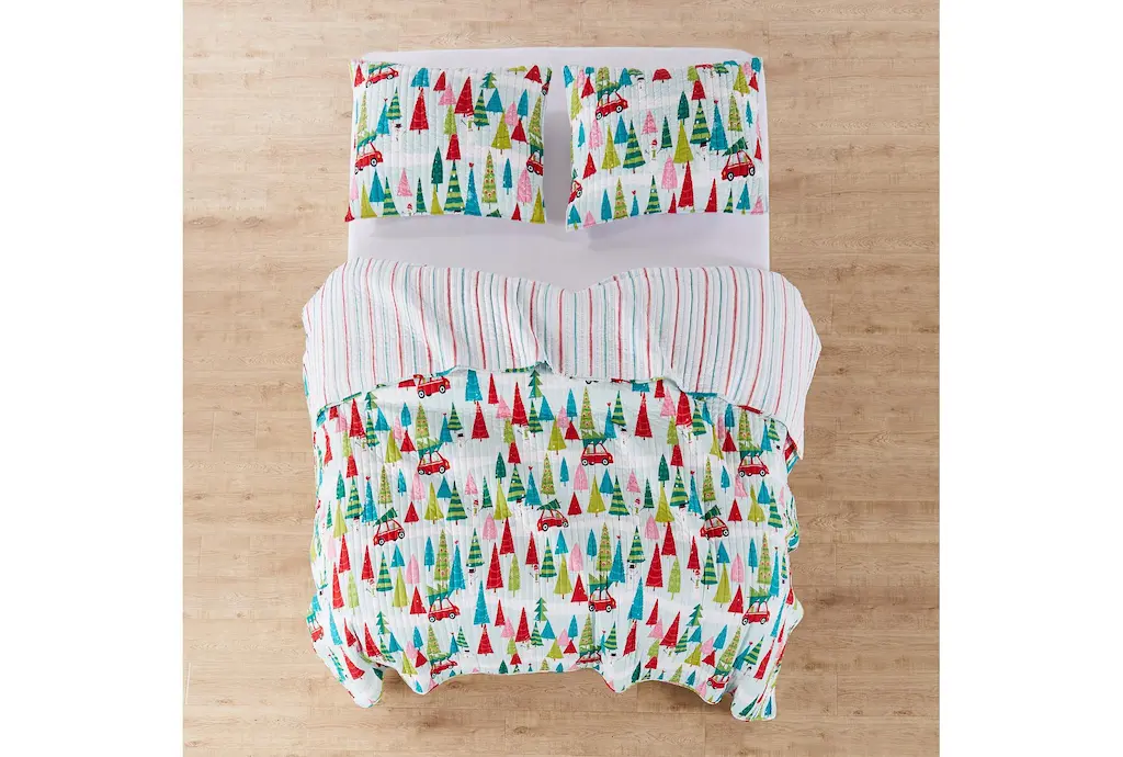 Twin Quilt- Reversible Multi Trees To Multi Stripe