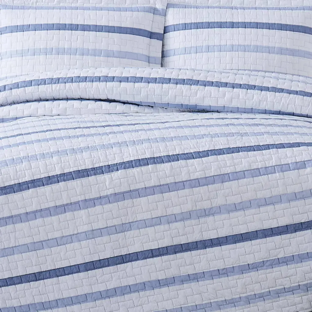 Twin Xl 2Pc Waffle Stripe Quilt Set Blue/white - Truly Soft: Microfiber, Reversible, Oeko-tex Certified