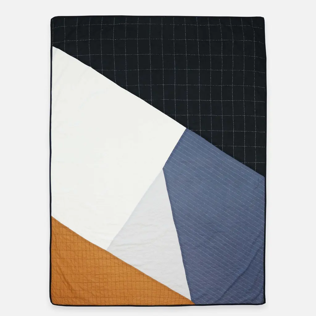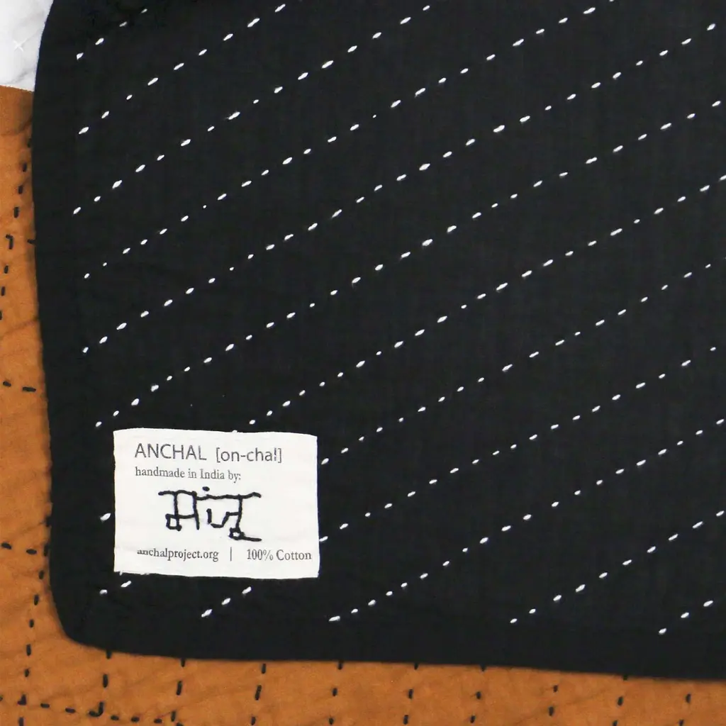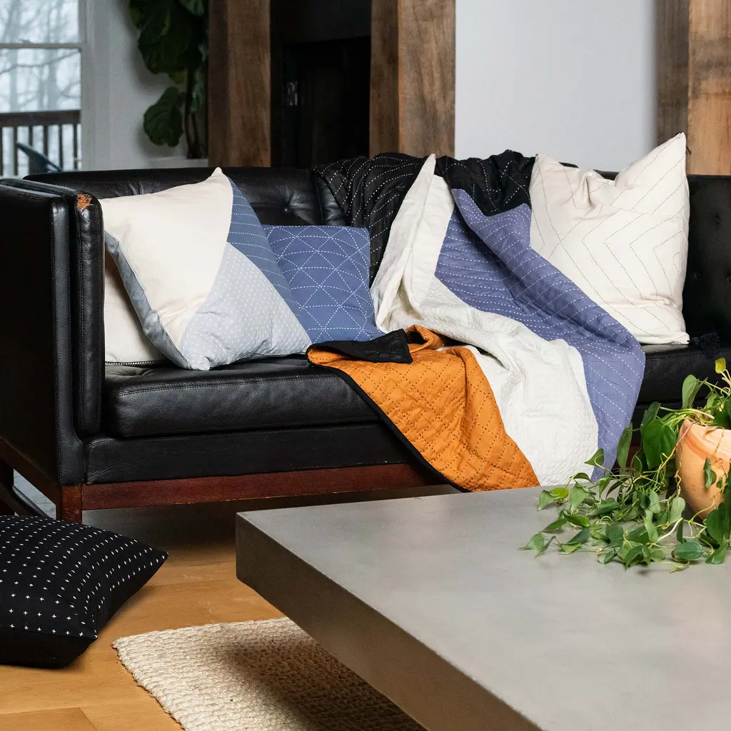Hand-stitched modern geometric design. Made from soft cotton with a feather fill. Crafted using traditional kantha techniques.