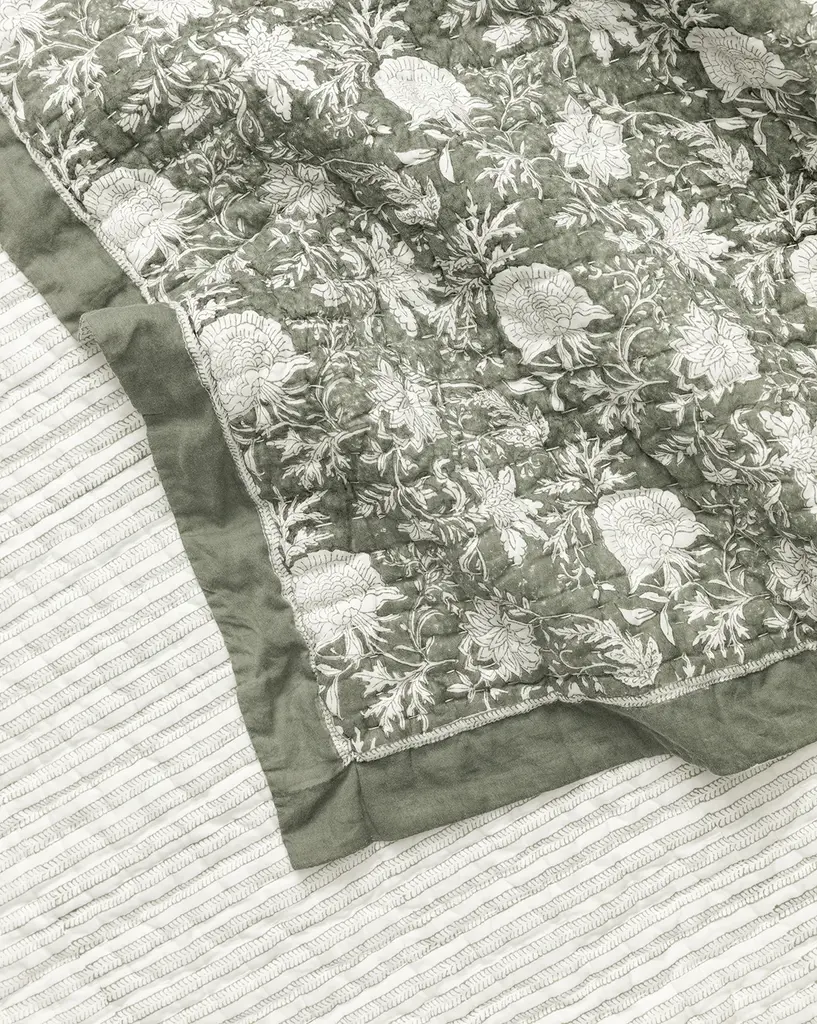 Audrey Sage Block Print Quilt