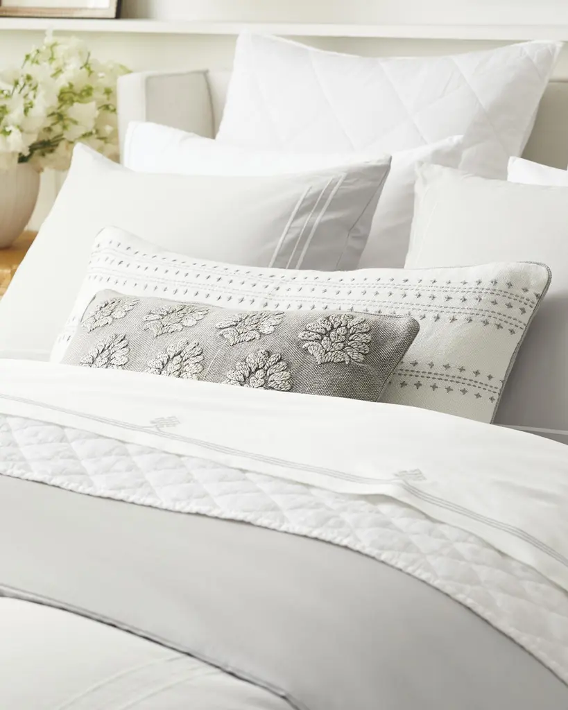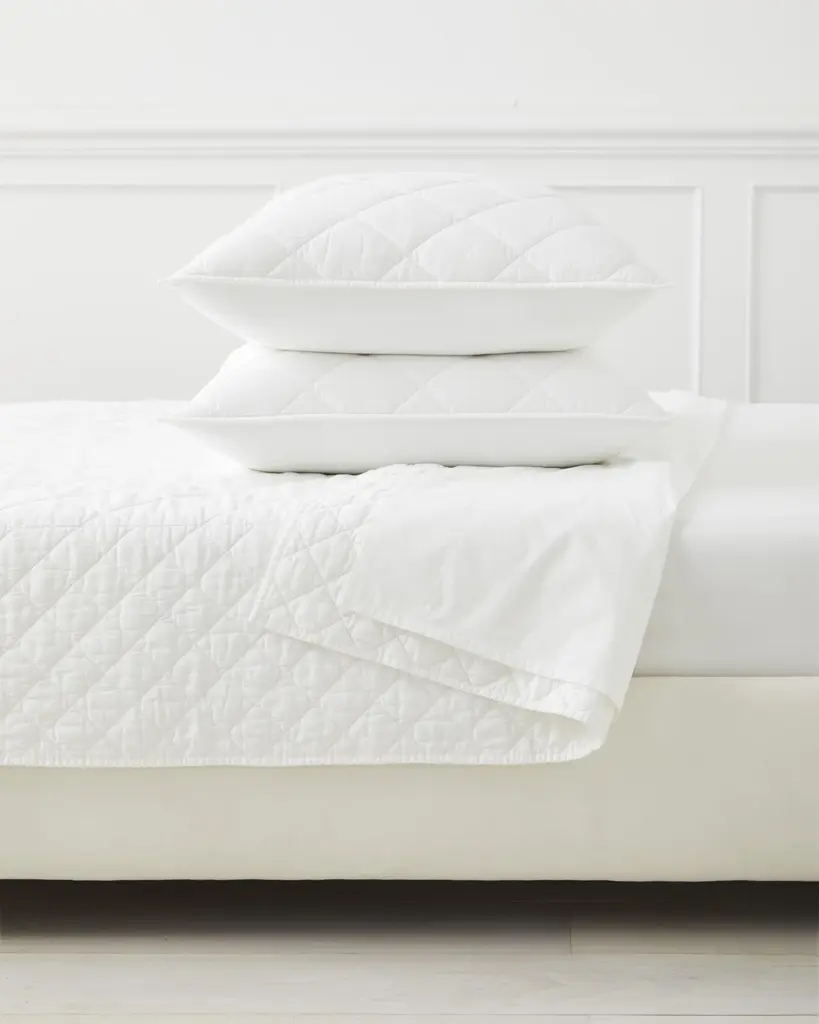 Under cover. A distinguished diamond lattice enhances washed sateen. Simply striking.