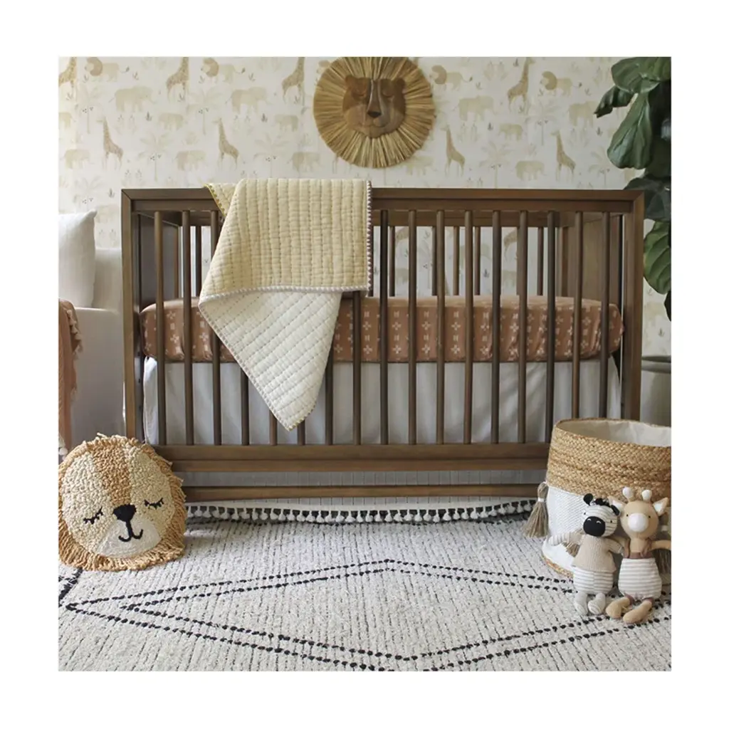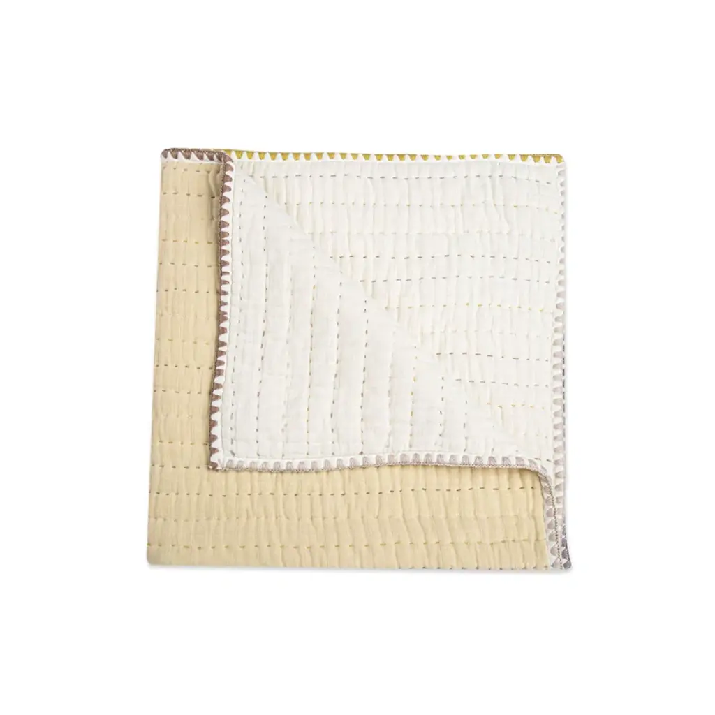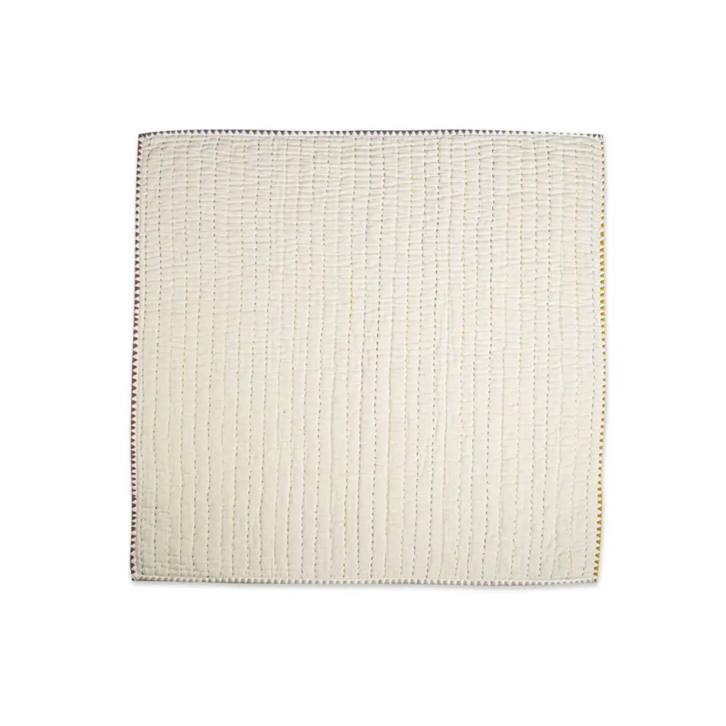 The kendi quilted baby blanket is the perfect neutral accent to add to your baby’s nursery! It was actually hand quilted, and it was made according to ancient techniques from India. The handmade detail of this blanket is so stunning, and it was thoughtfully and ethically sourced, as well. It would make a lovely playmat for your baby or an accent on your rocking chair. Pair it with one of our baby bedding sets for a stunning, polished look.