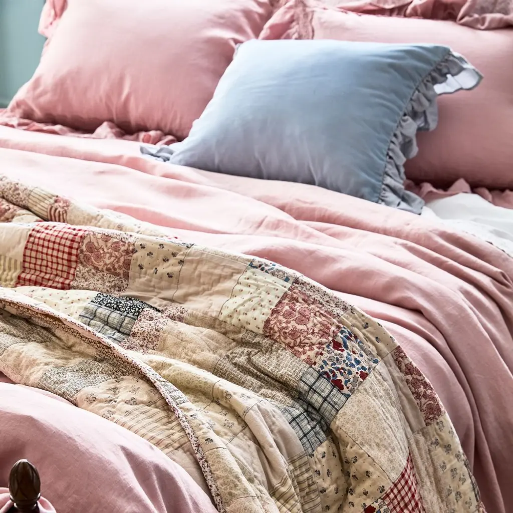 Upcycled, hand-quilted, and one of a kind. In the tradition of kantha, this quilt is hand-stitched by women in India using sari remnants. 100% cotton for natural softness.