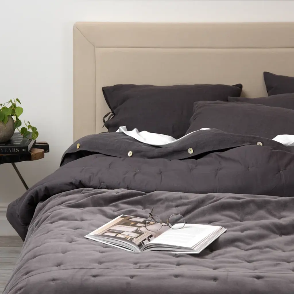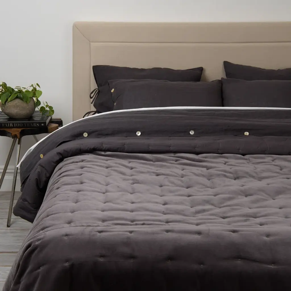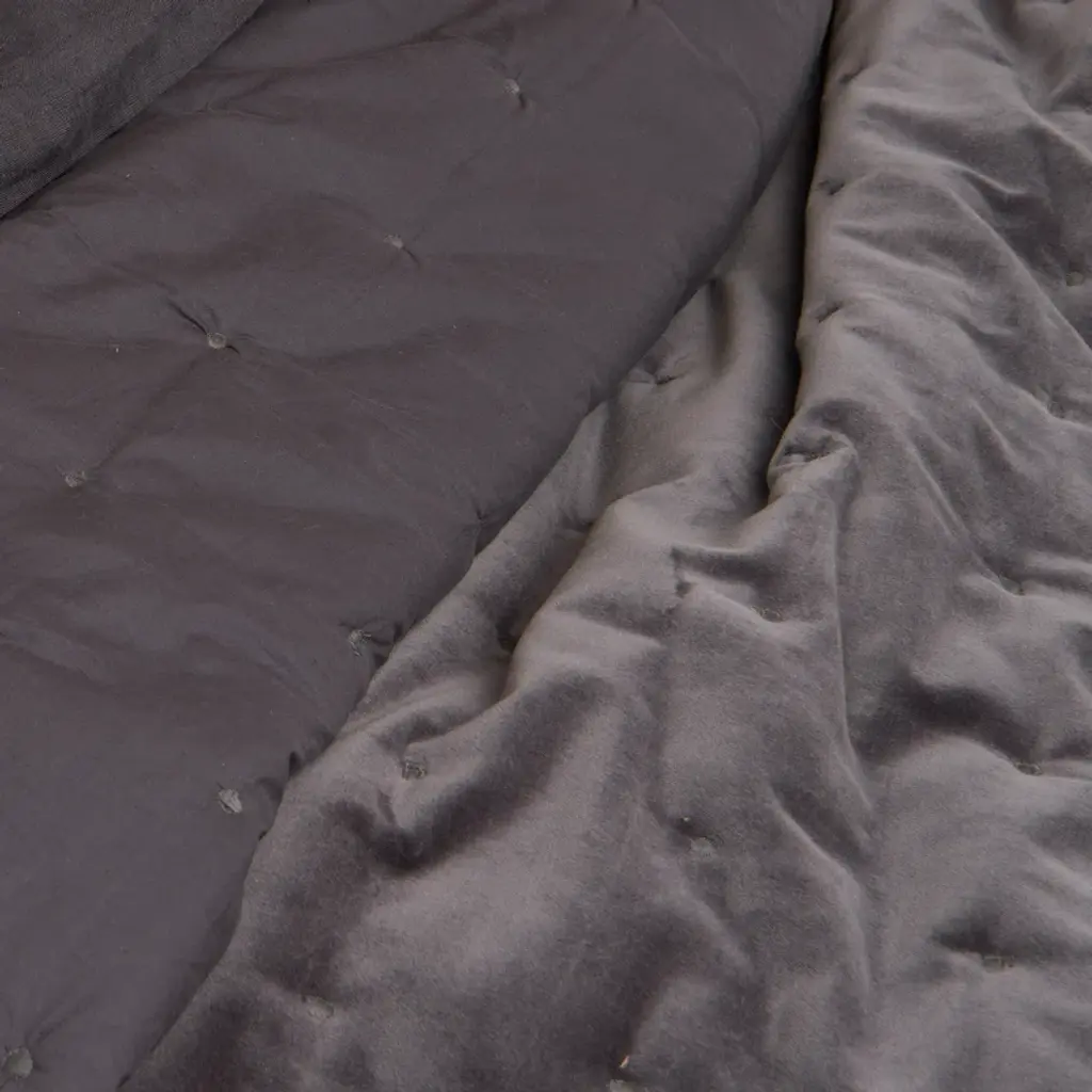 This quilt transforms bedroom decor with its understated elegance. Velvet and Cotton Tufted Quilt- Casual Elegance. Displaying the luxuriant look of velvet on top and the soft comfort of cotton on the bottom, this quilt, with its hand-sewn tufts, embodies a textural richness that is pleasing to the touch and appealing to the eye. ** KING - 108” L x 92” W, QUEEN - 88” L x 92” W, TWIN - 86” L x 68” W