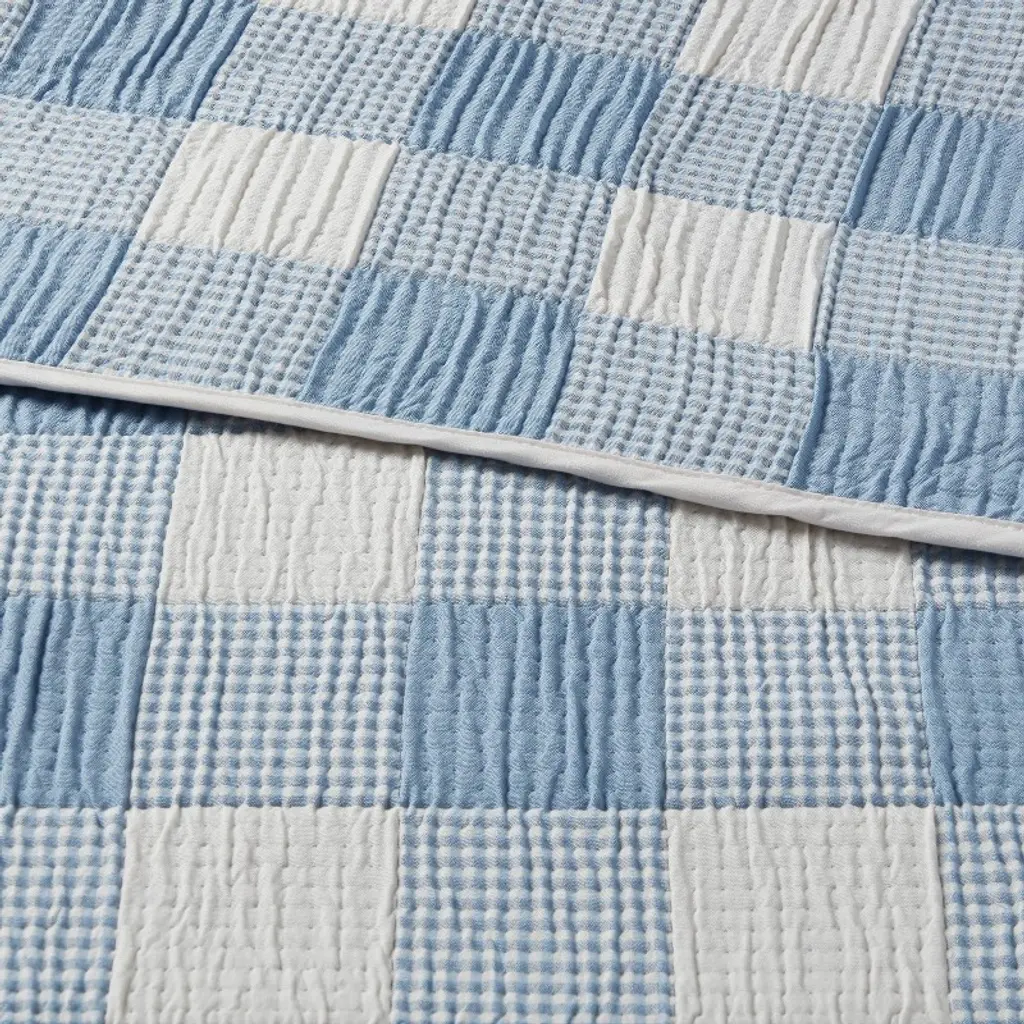 Add timeless, cozy style to your bedding with this Twin/Twin Extra Long Matelassé Quilt from Room Essentials™. Adorned with a light blue-and-white plaid pattern, this matelassé quilt is made of 100% recycled polyester fabric with backing and 100% polyester filling for cozy comfort. Plus, it’s designed with a machine-washable construction for added convenience. Pair it with crisp sheets and patterned or plain pillows, snuggle under it solo, or layer with a duvet for extra warmth on cooler nights.Room Essentials™: Everyday Value
