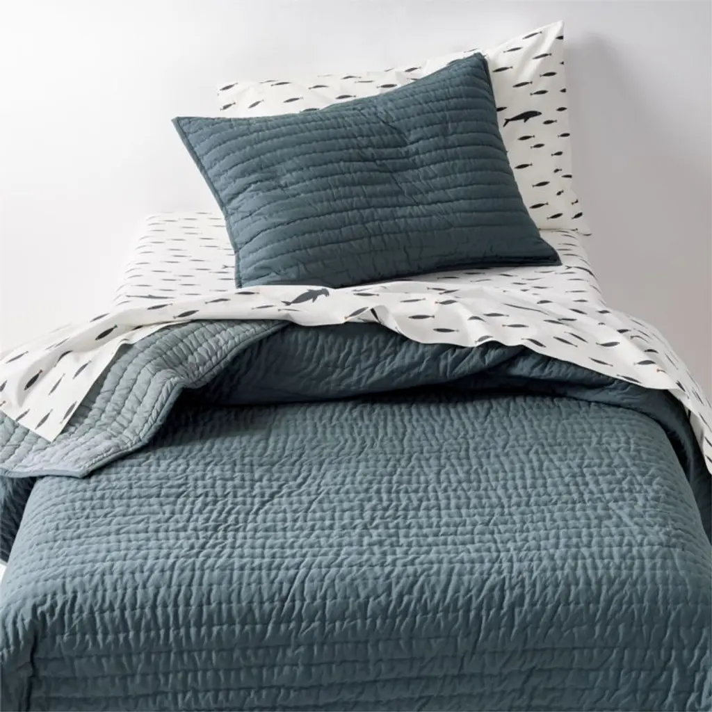Geo Matelasse Muted Teal Organic Cotton Kids Full/queen Quilt