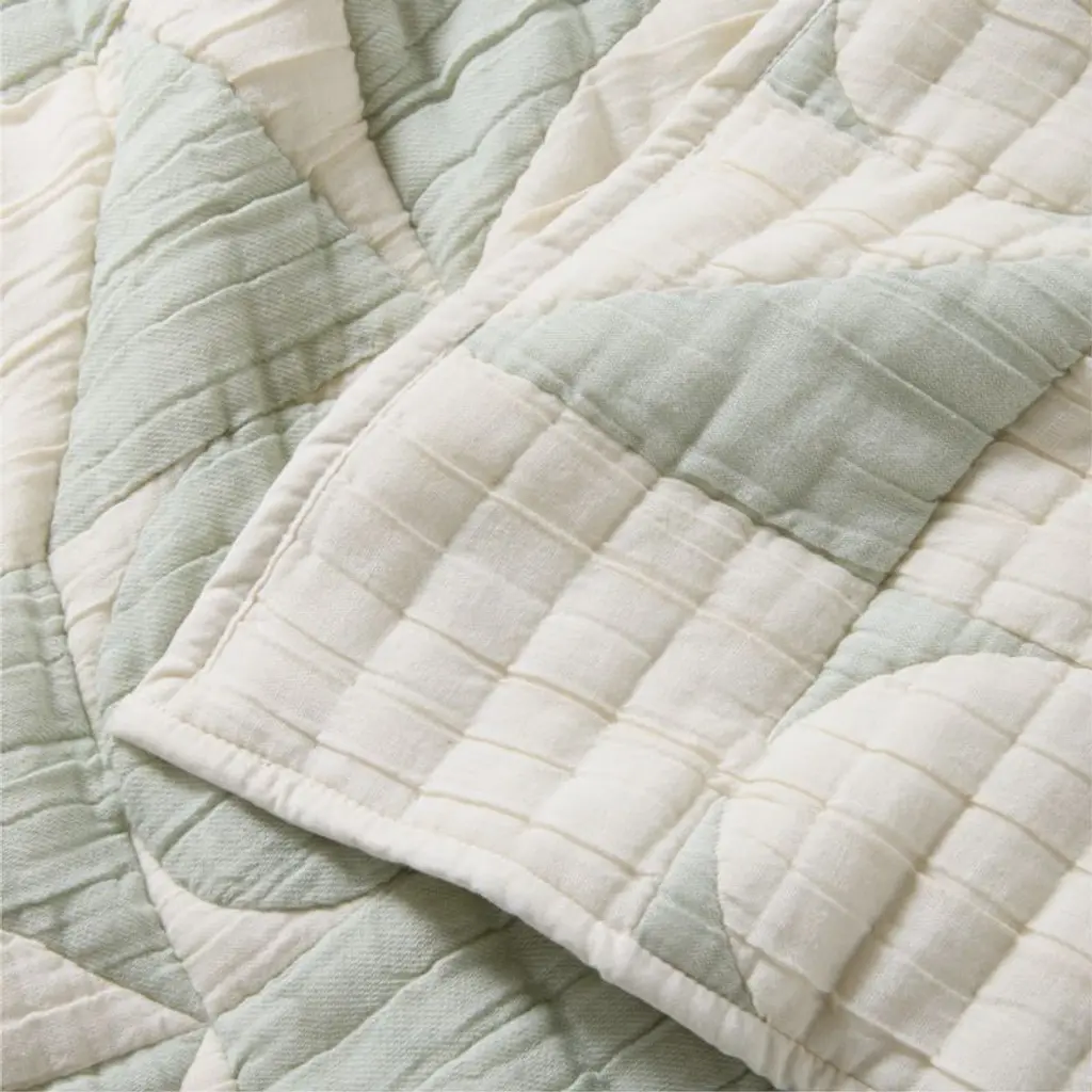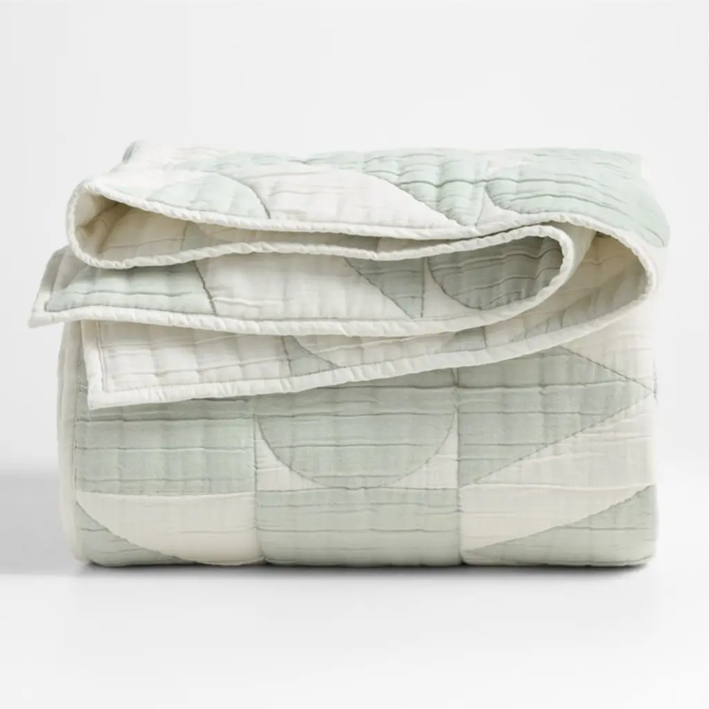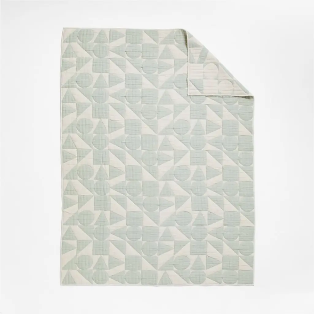 Striking but with a soft side, our Geo Matelasse Quilt features a graphic lineup of shapes in muted tones of teal and soft ecru. Each circle, square and triangle is woven through the unbleached organic cotton gauze with a technique called matelasse, making the quilt fully reversible and extra fluffy. The feel? Plush, downy and cozy yet breathablein other words, the perfect quilt to snuggle up with year-round.