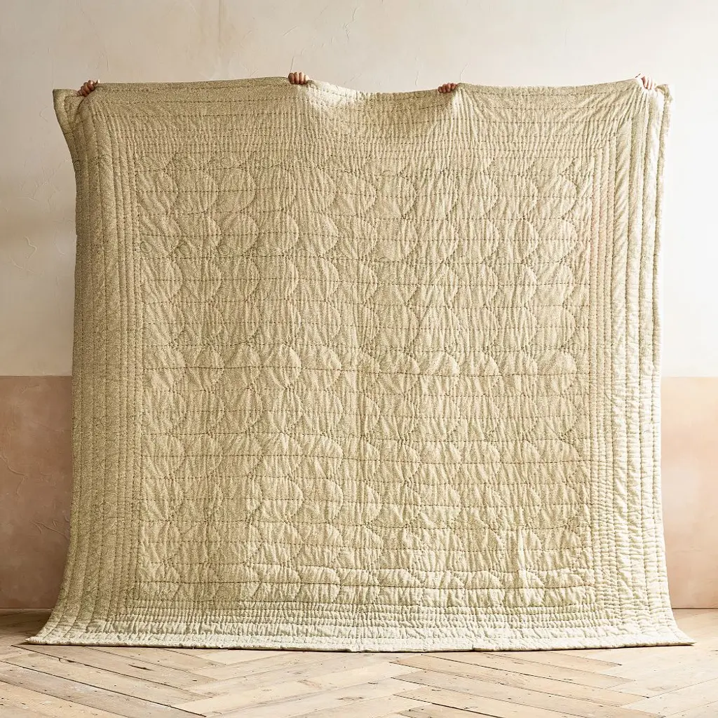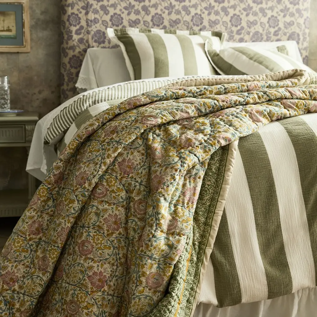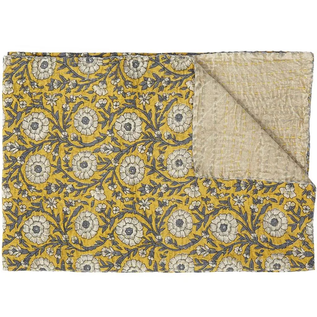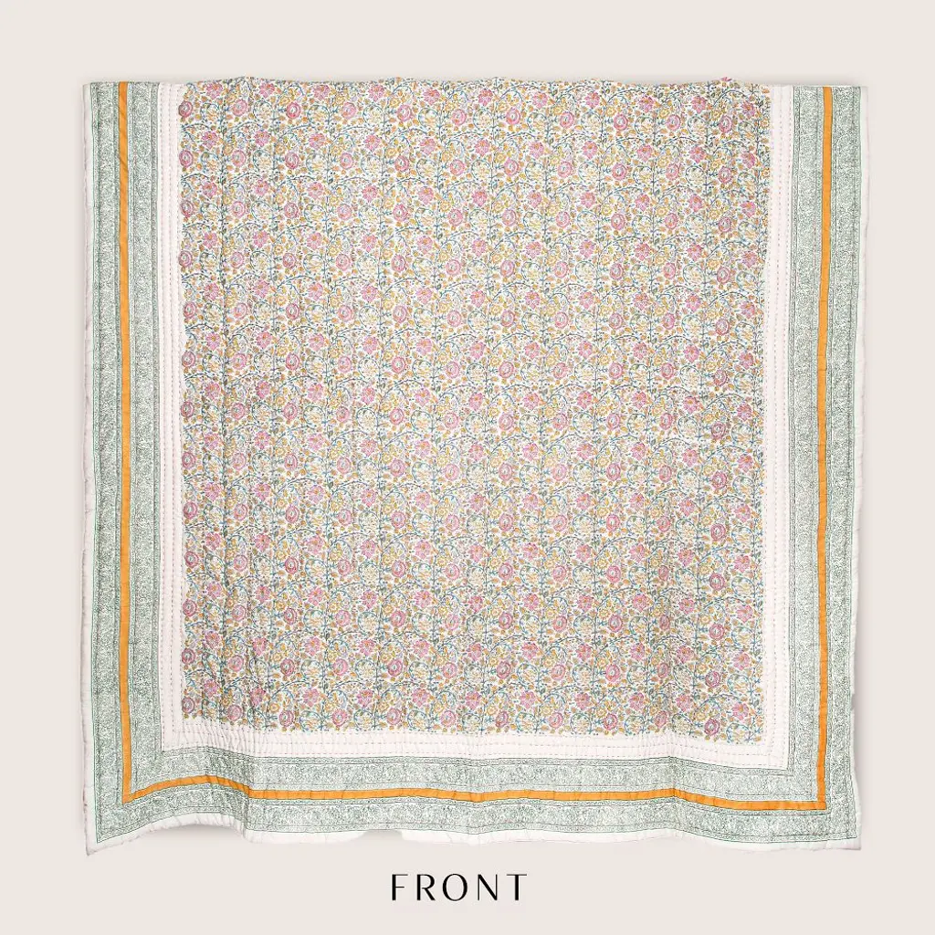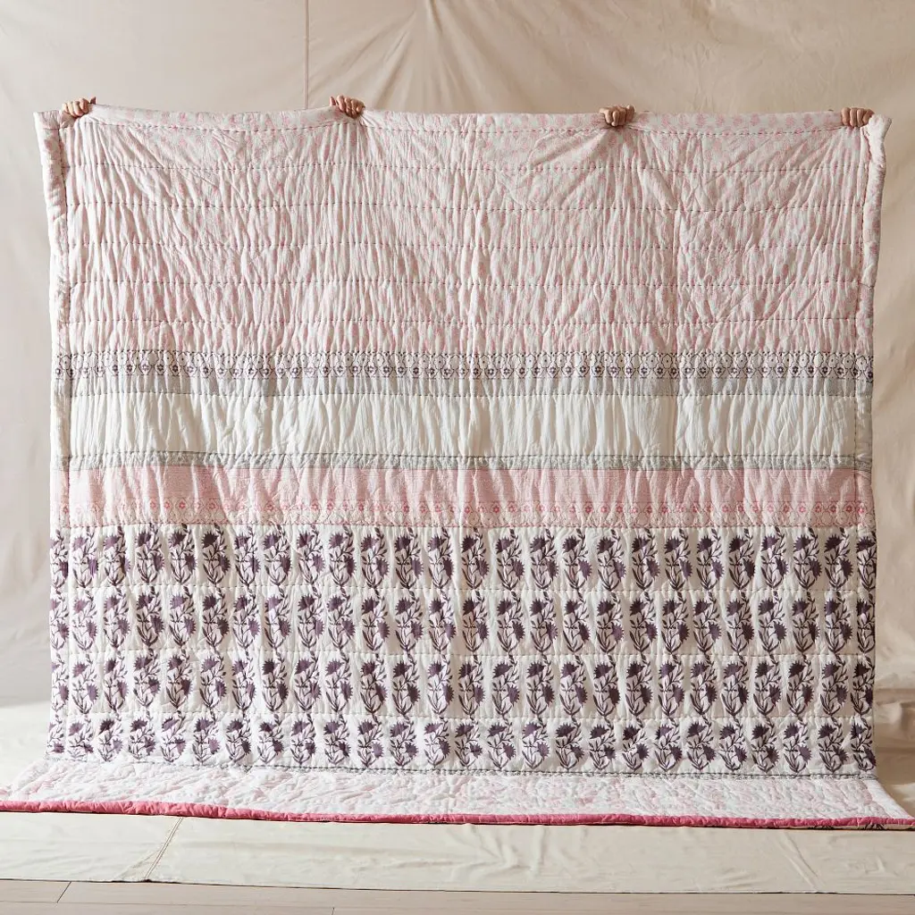 A lasting layer. Designed for all seasons, this cotton quilt was hand-printed and sewn by artisans in Jaipur, India. In summer, use it as a lightweight quilt. In winter, layer it over a blanket or duvet.