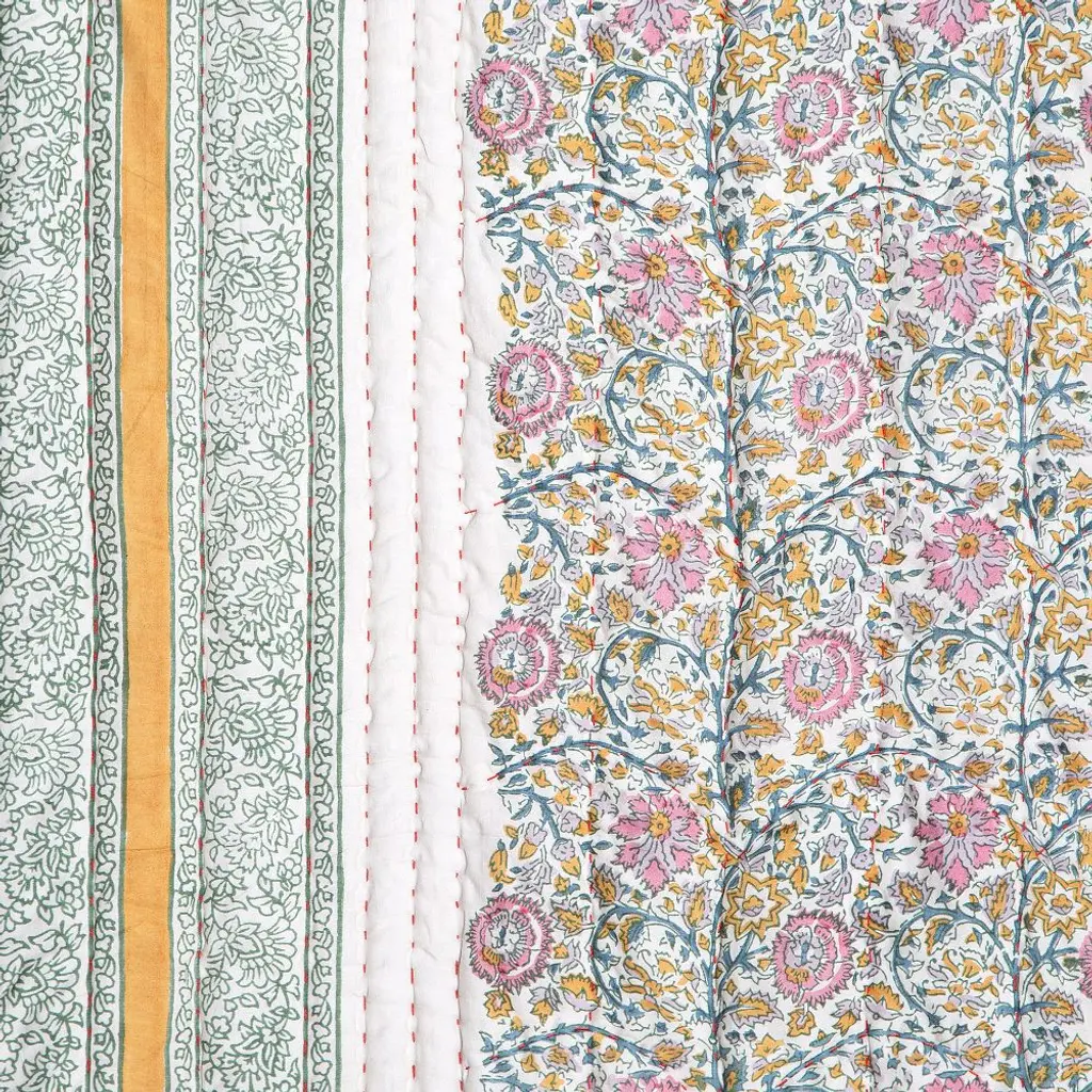A lasting layer. Designed for all seasons, this cotton quilt was hand-printed and sewn by artisans in Jaipur, India. In summer, use it as a lightweight quilt. In winter, layer it over a blanket or duvet.