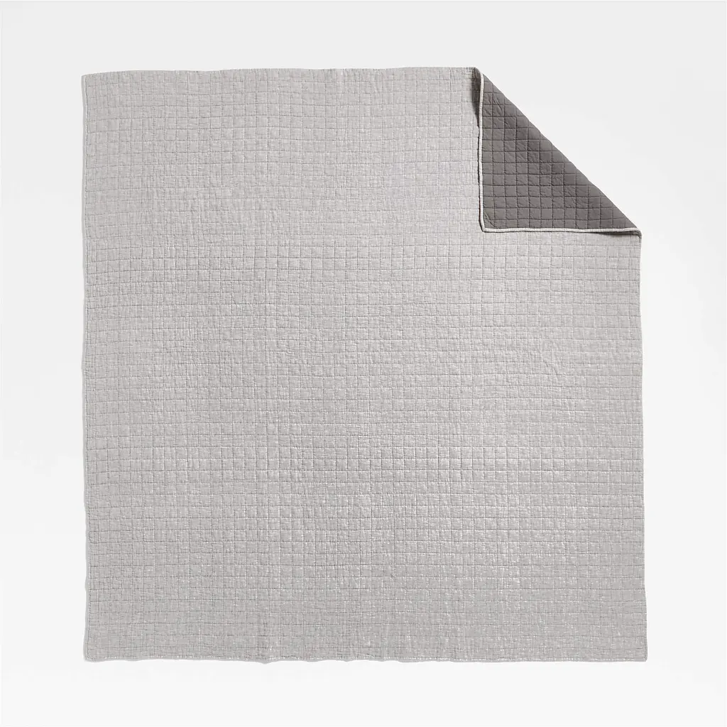 Pure linen chambray in softly variegated grey is quilted into a grid of 2" squares. Our exclusive Belgian flax linen quilt is finished neatly with self-binding tailoring. Backed with solid cotton percale and filled with pure cotton batting, this grey quilt has modern organic appeal, a beautiful feel and subtle, sophisticated coloration. For a coordinated bed, pair with our Belgian flax linen shams.