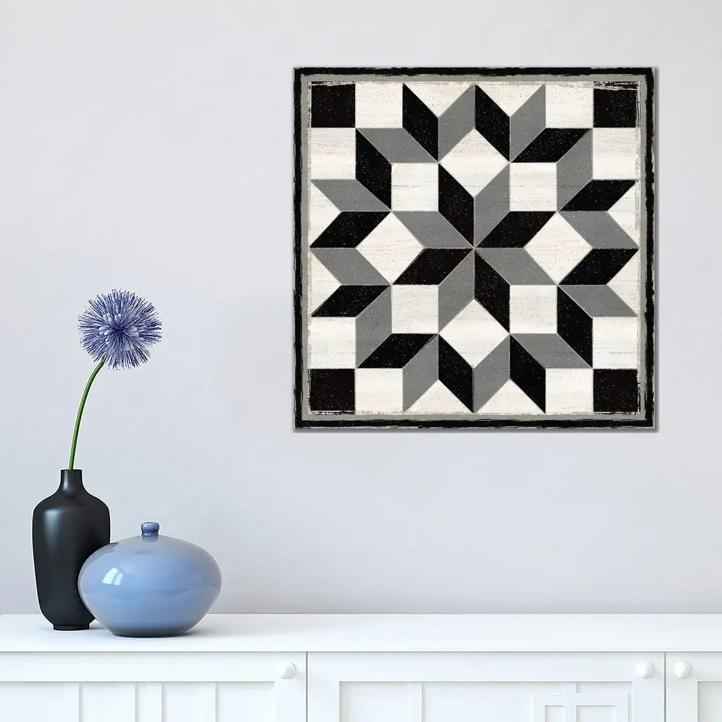 Icanvas "Black & White Quilt Block I" By Tara Reed Canvas Print - 12x12x1.5