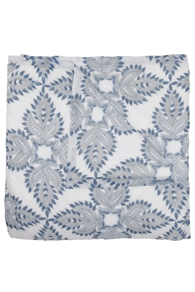 Our best selling Dasati duvet is now available as a quilt. Quilted by hand, printed on pure cotton voile, soft and lightweight, yet so warm. Quilt is printed on both the front and back.* Printed on pure cotton voile: a soft, lightweight fabric with a smooth surface.* Hand quilted.* Printed front and back.* Euro (26 x 26) has hidden zipper.* Machine wash cold, separately, delicate cycle. Tumble dry low. Do not bleach. Iron at medium setting if necessary.* Imported#### *Dimensions** Twin Size: 72" x 92"* Queen Size: 92" x 92"* King Size: 110" x 92"