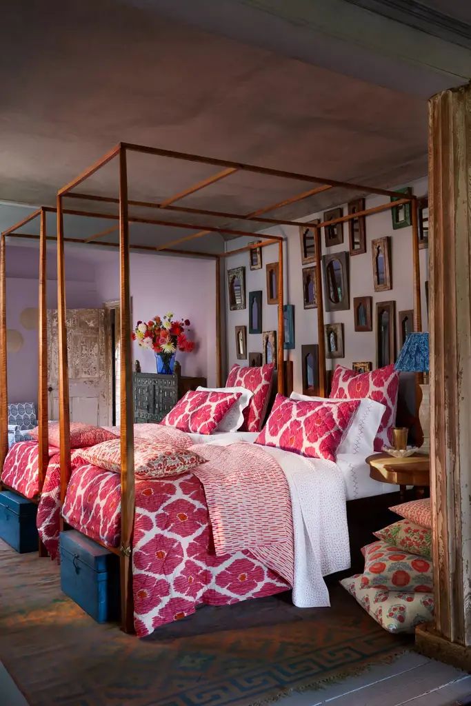 John found this much loved poppy ikat print when going through the archives. Our latest collection was the perfect time to bring back this colorful hit.* Hand quilted* Euro (26" x 26") has hidden zipper* Machine wash cold separately, delicate cycle, tumble dry low, do not bleach, iron at medium setting if necessary.* Imported#### *Dimensions** Twin Size: 72" x 92"* Queen Size: 92" x 92"* King Size: 110" x 92"