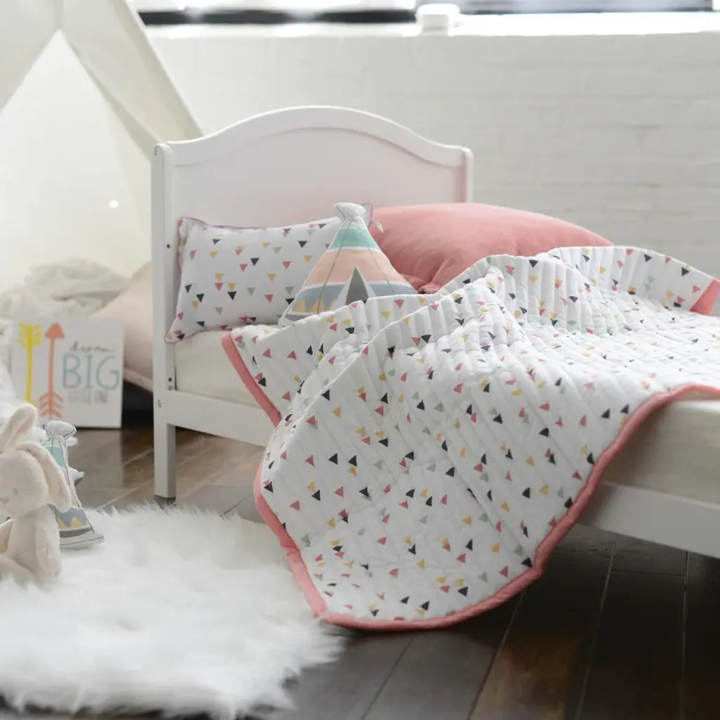 Little dreamers will love this reversible quilt. Featuring a geometric design in fun colors on one side and a dreamcatcher on the other side, this quilt is whimsical and cool. Made of cotton that's smooth to the touch and gentle on the skin. A quilt that instantly adds pop to a bed or tepee for imaginative play and restful dreaming.