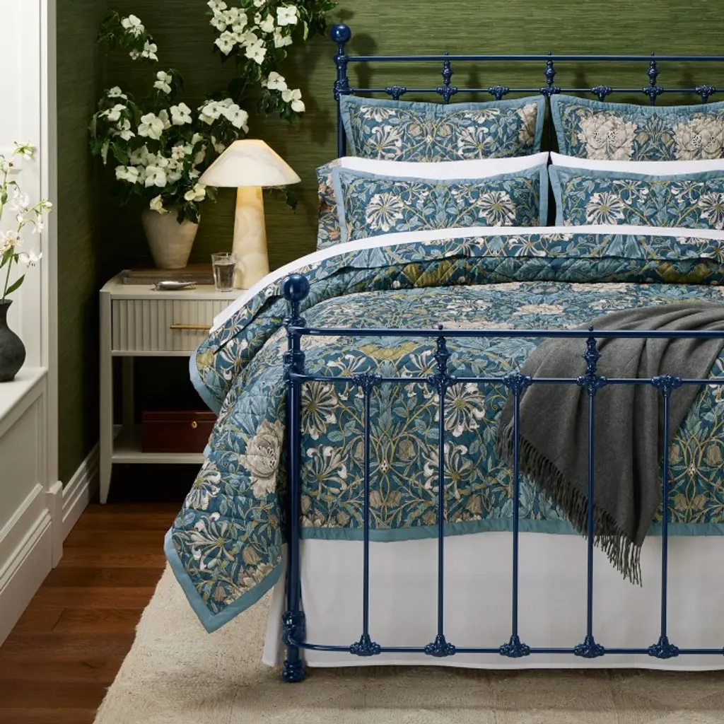 Morris & Co. designs are synonymous with the Arts and Crafts movement, featuring intricate motifs inspired by the natural world. Our Morris & Co. x Williams Sonoma Home Honeysuckle Tulip Bedding Collection features one of the firm's most iconic botanical designs. Tailored from Turkish cotton sateen for luxe softness and warm sheen, the bedding is diamond quilted over light, lofty fill and finished with coordinating piping.