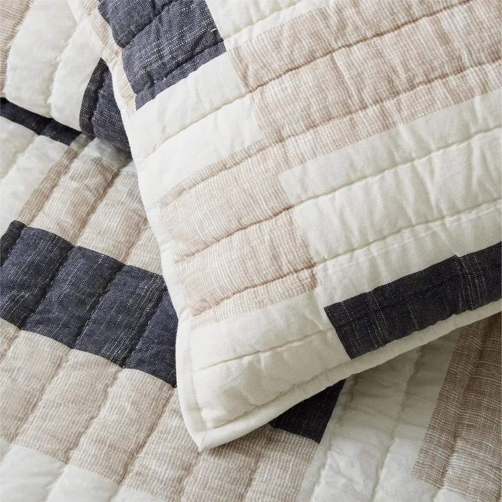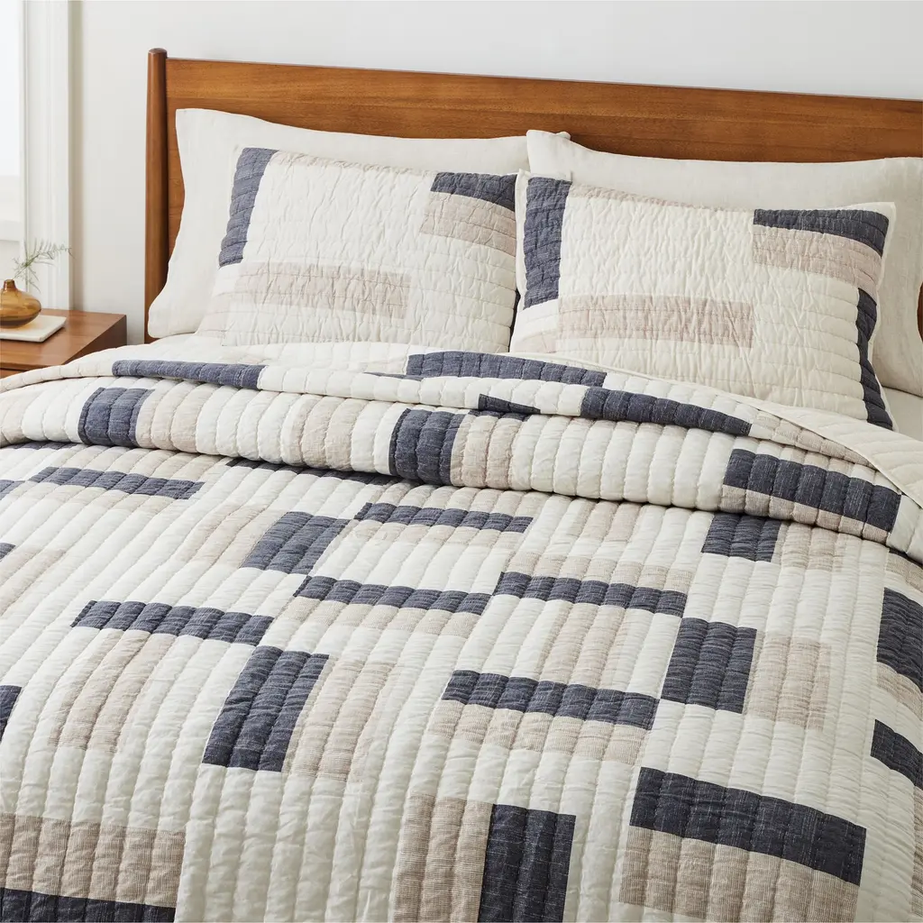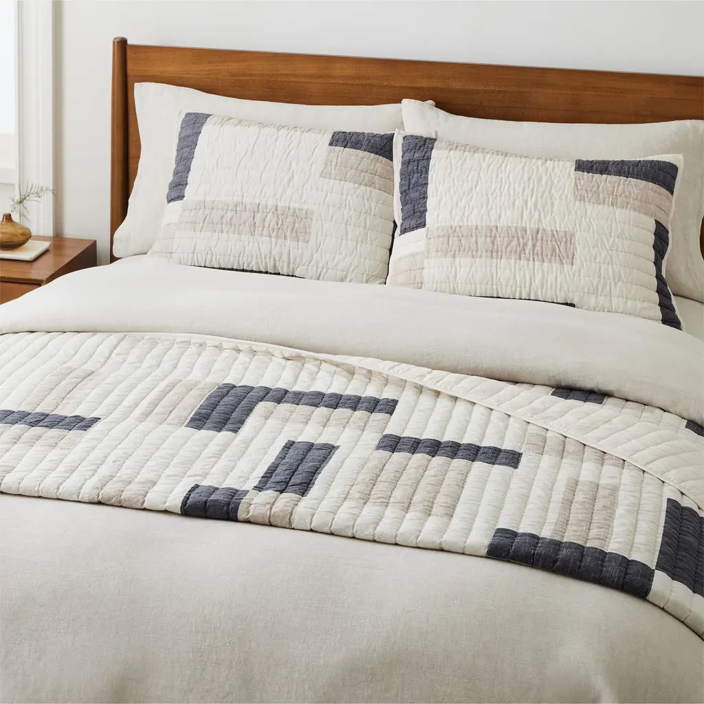 Brings heirloom quality craftsmanship to your bedroom. Modern take on patchwork makes it a cozy layer you'll have forever. Each is hand quilted by skilled artisans in India.