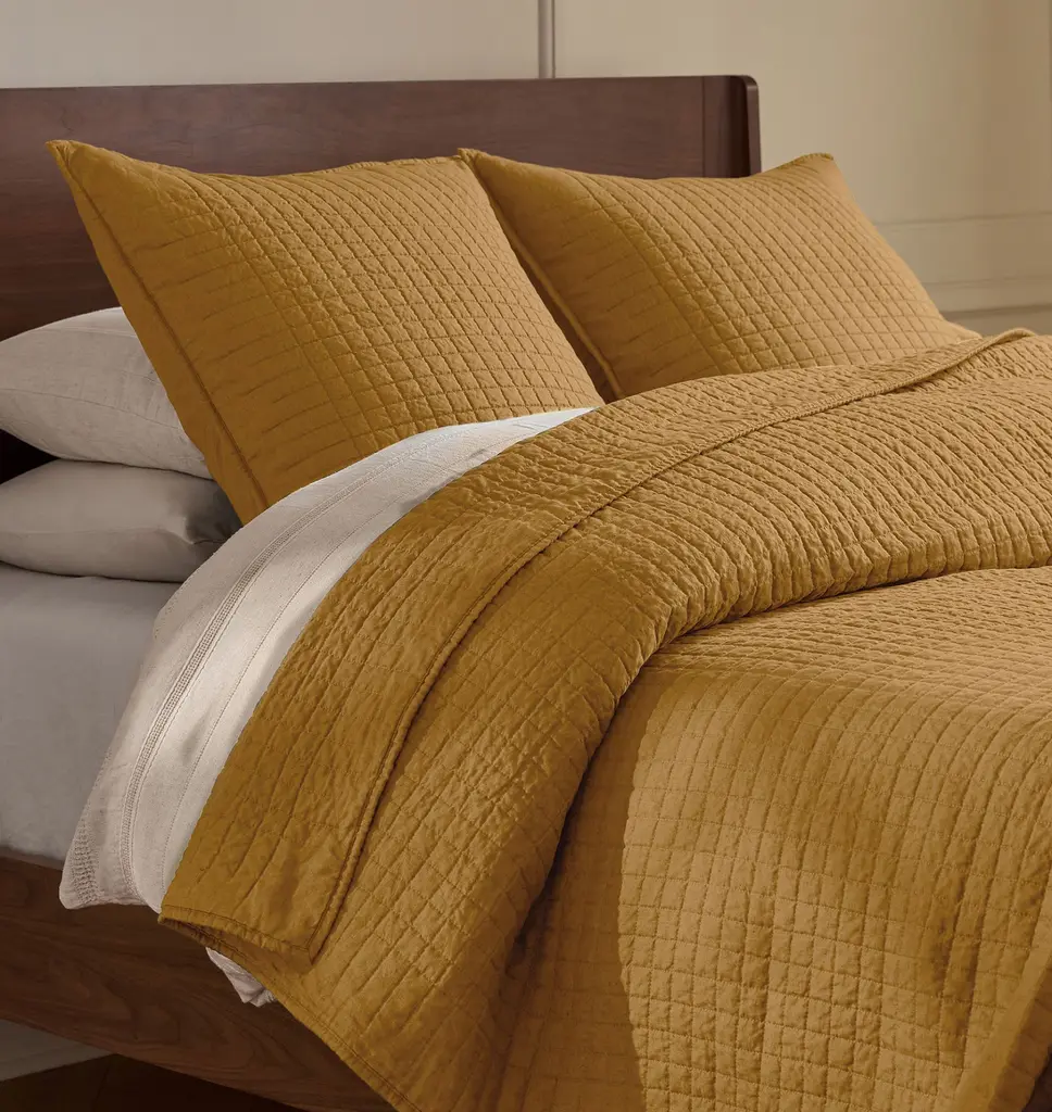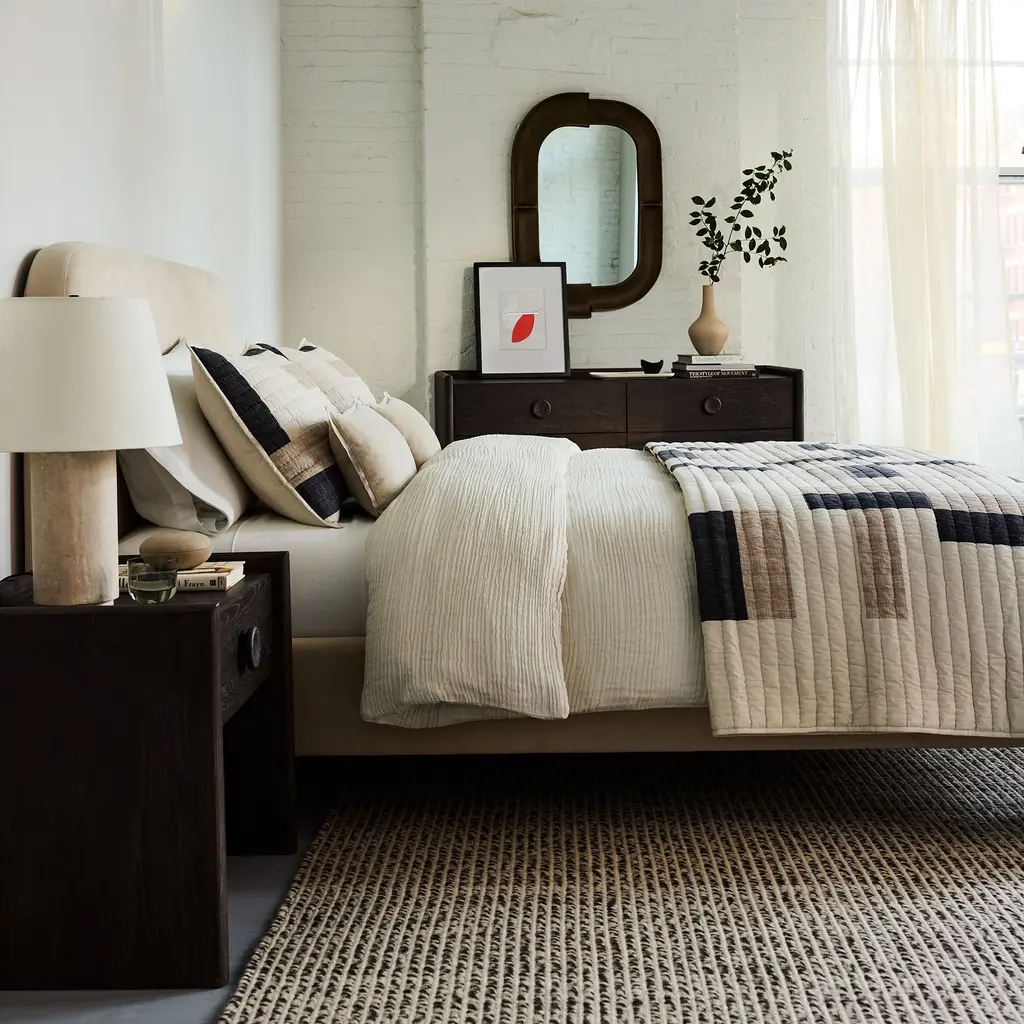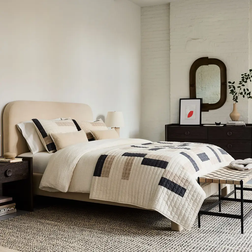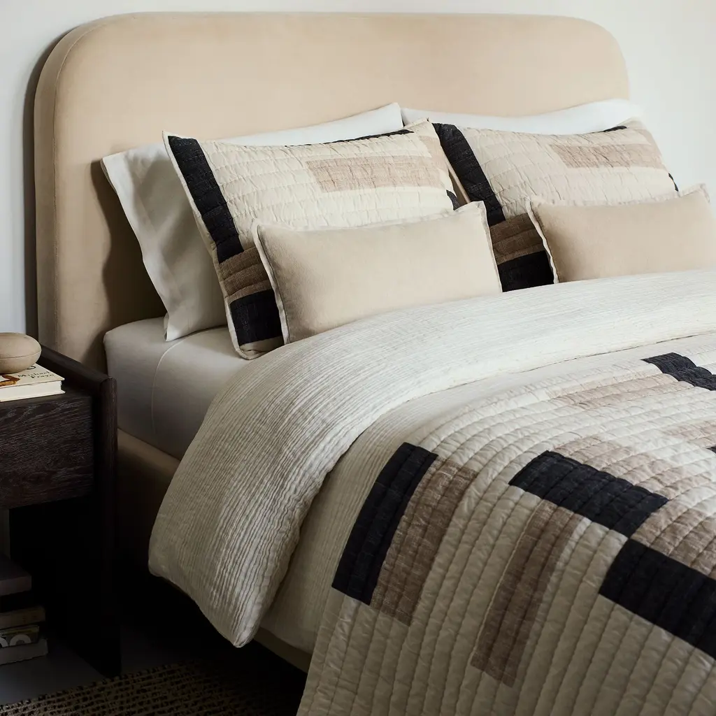 Brings heirloom quality craftsmanship to your bedroom. Modern take on patchwork makes it a cozy layer you'll have forever. Each is hand quilted by skilled artisans in India.