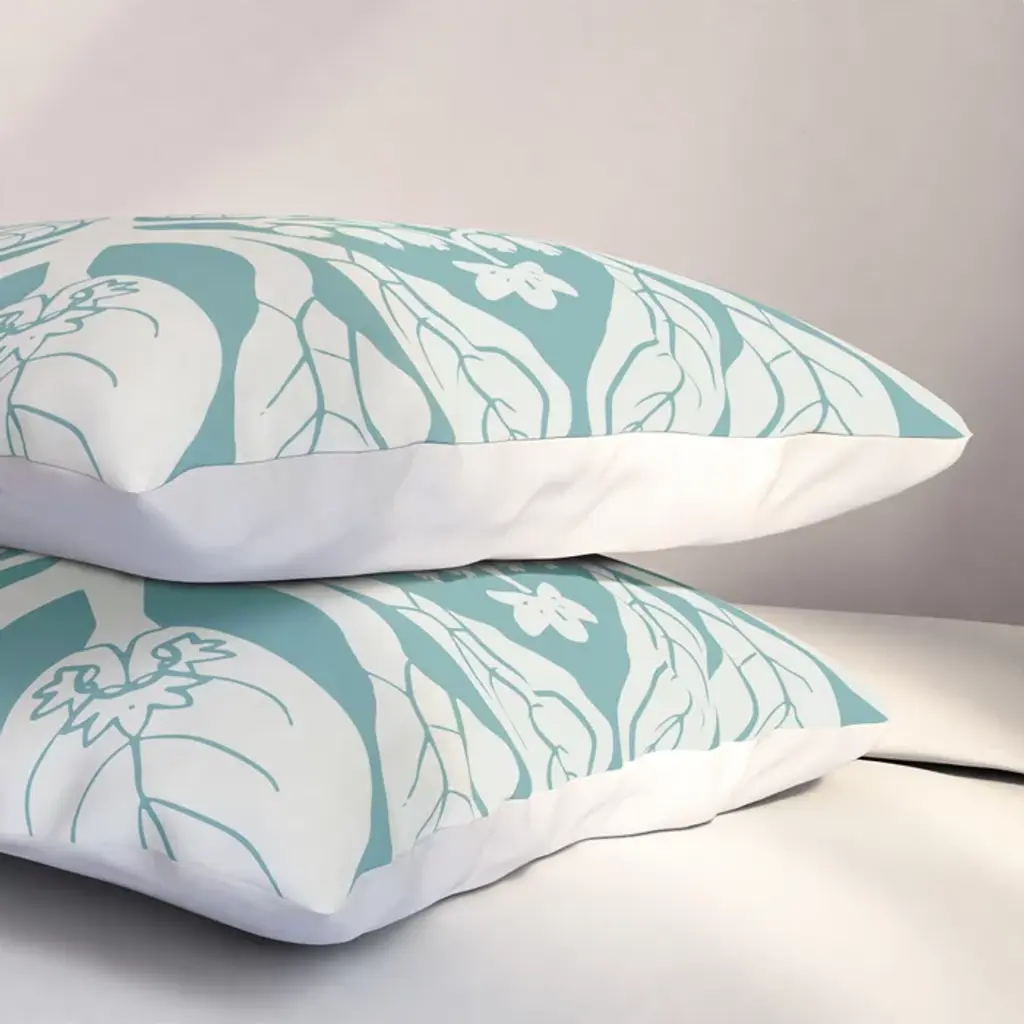 Naupaka Hawaiian Quilt Design On Dusty Teal Pillow Sham