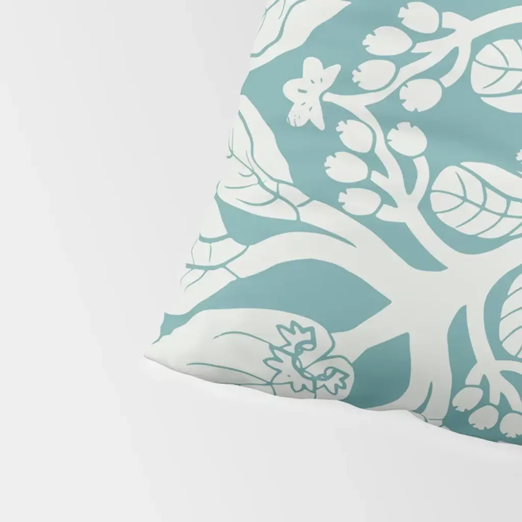 Naupaka Hawaiian Quilt Design On Dusty Teal Pillow Sham