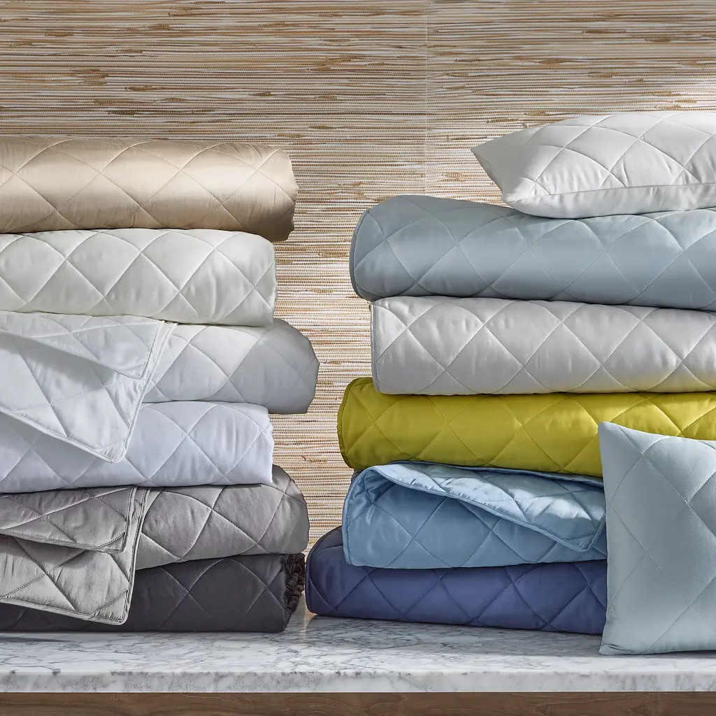 The Nocturne Quilt is an unmistakably Matouk classic. Sumptuous Nocturne sateen, precise harlequin-patterned quilting and an understated piped finish combine to make this softly draping quilt a must-have for lovers of fine bed linens. Available in a vast range of luminous colors.