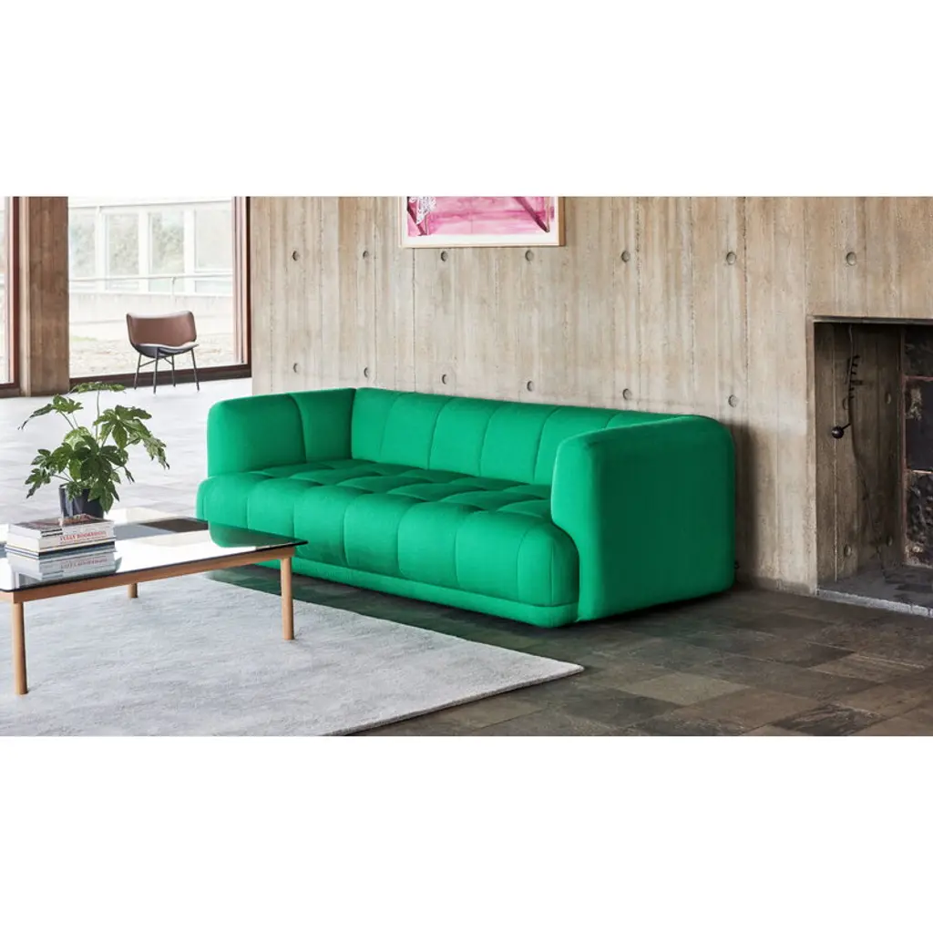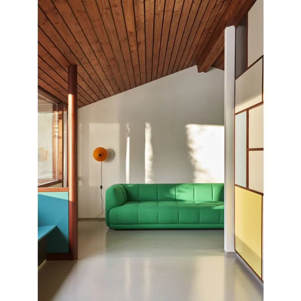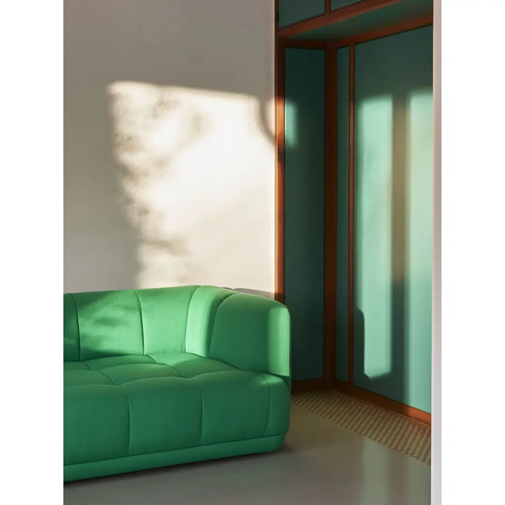 HAY’s Quilton sofa feels inviting down to the last detail: introducing a rounded silhouette and generously padded cushions perfected with stitching, the Quilton sofas are not only beautiful but also extremely comfortable. Created by design studio Doshi Levien, the Quilton collection consists of various combinations of sofas and modules. The uncomplicated design makes them easily adaptable and customizable for different spaces, both private and public alike. HAY’s Quilton sofas feature a voluminous silhouette, high armrests and deep seats, making them perfect for relaxed sitting, lounging and lazing. Because sofas are always large and visually dominant elements, the designers gave Quilton a minimalistic appearance and paid special attention to everything that cannot be seen: a good suspension, soft cushions and durable upholstery. Thanks to Quilton’s sleek look, you can alter the look of the sofa with different cushions and blankets whenever you feel like it.